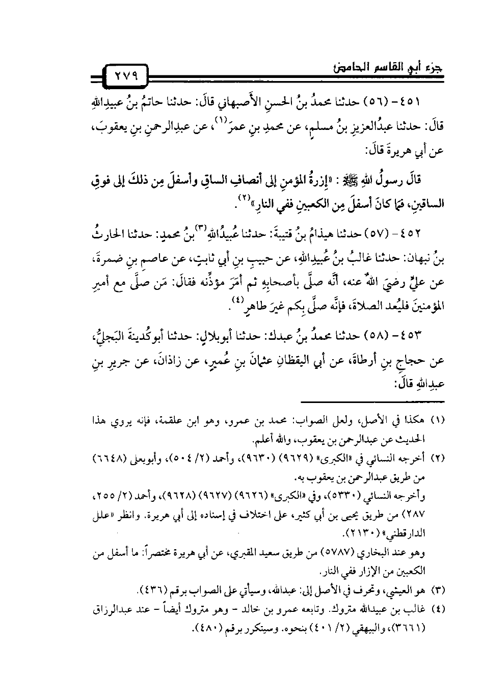 454 - (59) حدثنا الفضلُ بنُ موسى: حدثنا يعقوبُ بنُ إسحاقَ قالَ: حدثنا ثهلانُ بنُ قبيصةَ، عن حبيبِ بنِ فضالةَ، عن عمرانَ بنِ حُصينٍ قالَ: