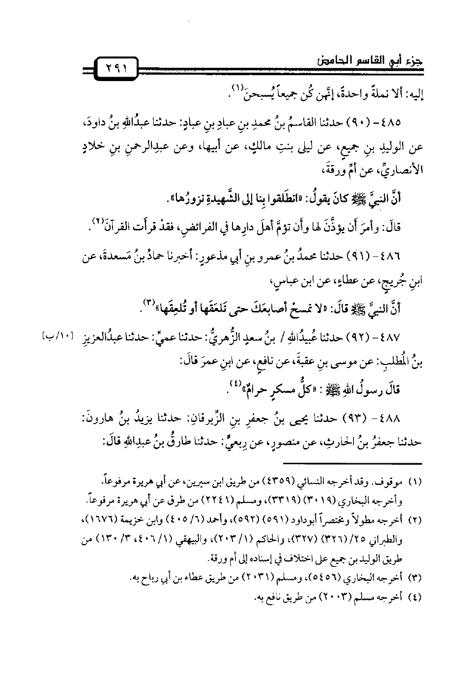 489 - (94) حدثنا محمدُ بنُ مسلمِ بن وارَةَ: حدثنا عمرو بنُ عاصمٍ: حدثني عُبيدُاللهِ بنُ الوازِعِ، عن أيوبَ السَّختياني، عن أبي الزُّبيرِ، عن جابرٍ قالَ: