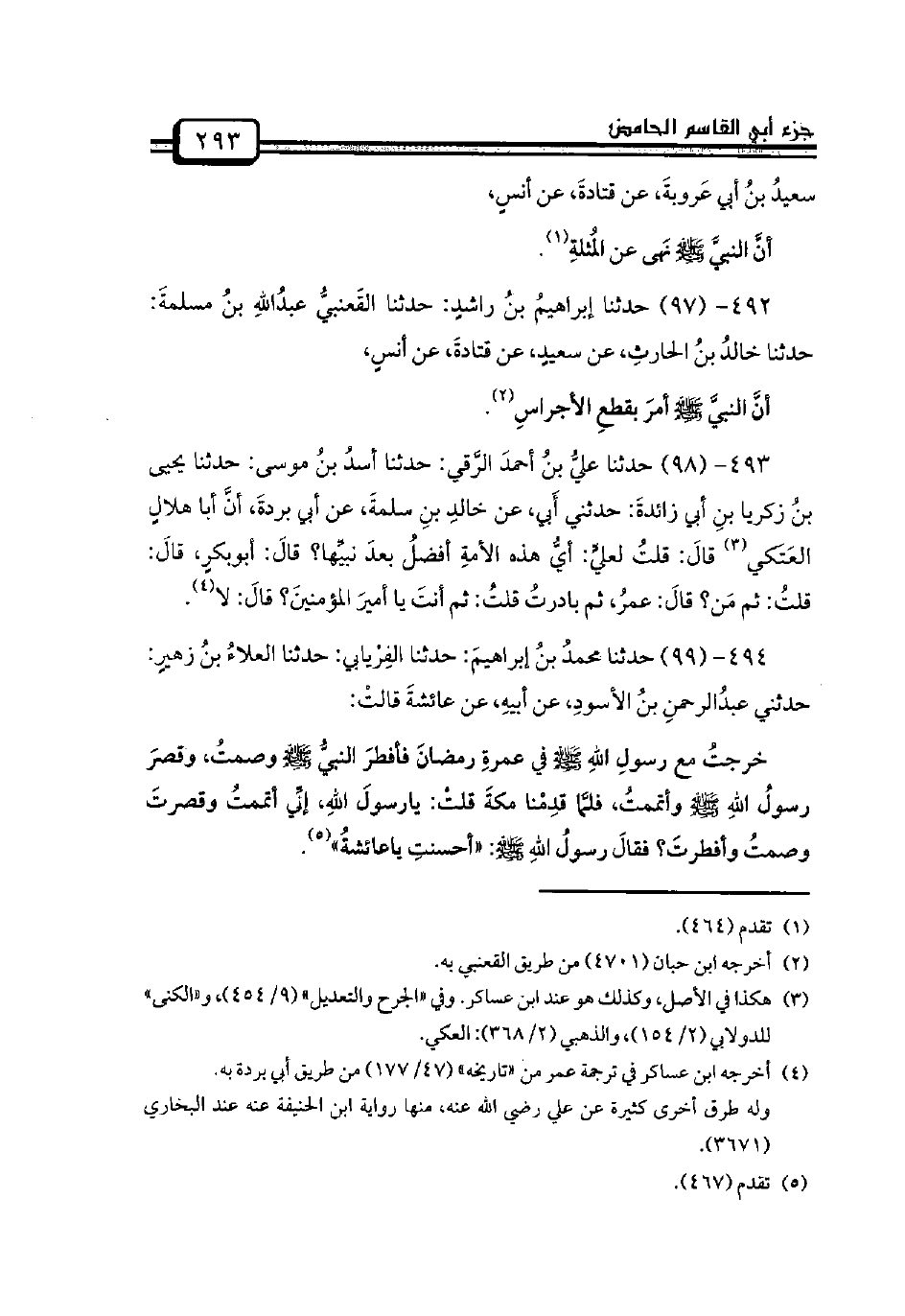 496 - (101) حدثنا إبراهيمُ - هو ابنُ راشدٍ -: حدثنا مسلمُ بنُ إبراهيمَ: حدثنا عونُ بنُ عمرو القَيسي أخو رياحٍ: حدثنا سعيدٌ الجَريريُّ، عن عبدِاللهِ بنِ بريدةَ، عن يحيى بنِ يعمرَ، عن جريرٍ،