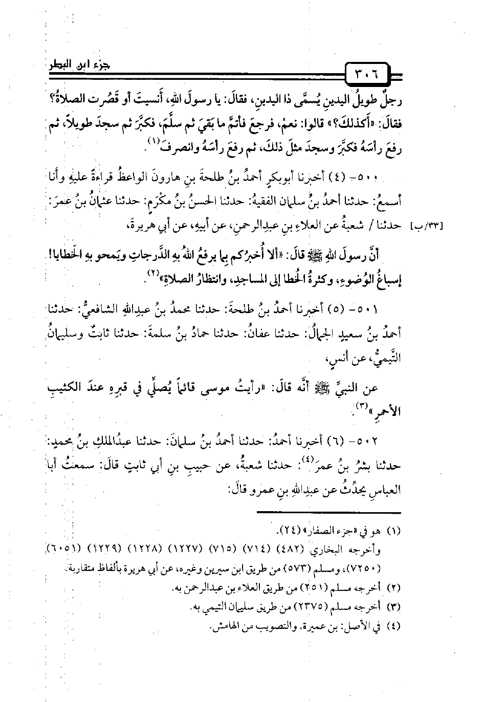 500 - (4) أخبرنا أبوبكرٍ أحمدُ بنُ طلحةَ بنِ هارونَ الواعظُ قراءةً عليهِ وأَنا أسمعُ: حدثنا أحمدُ بنُ سلمان الفقيهُ: حدثنا الحسنُ بنُ مكْرَمٍ: حدثنا عثمانُ بنُ عمرَ: حدثنا / شعبةُ عن العلاءِ بنِ عبدِالرحمنِ، عن أبيهِ، عن أبي هريرةَ،