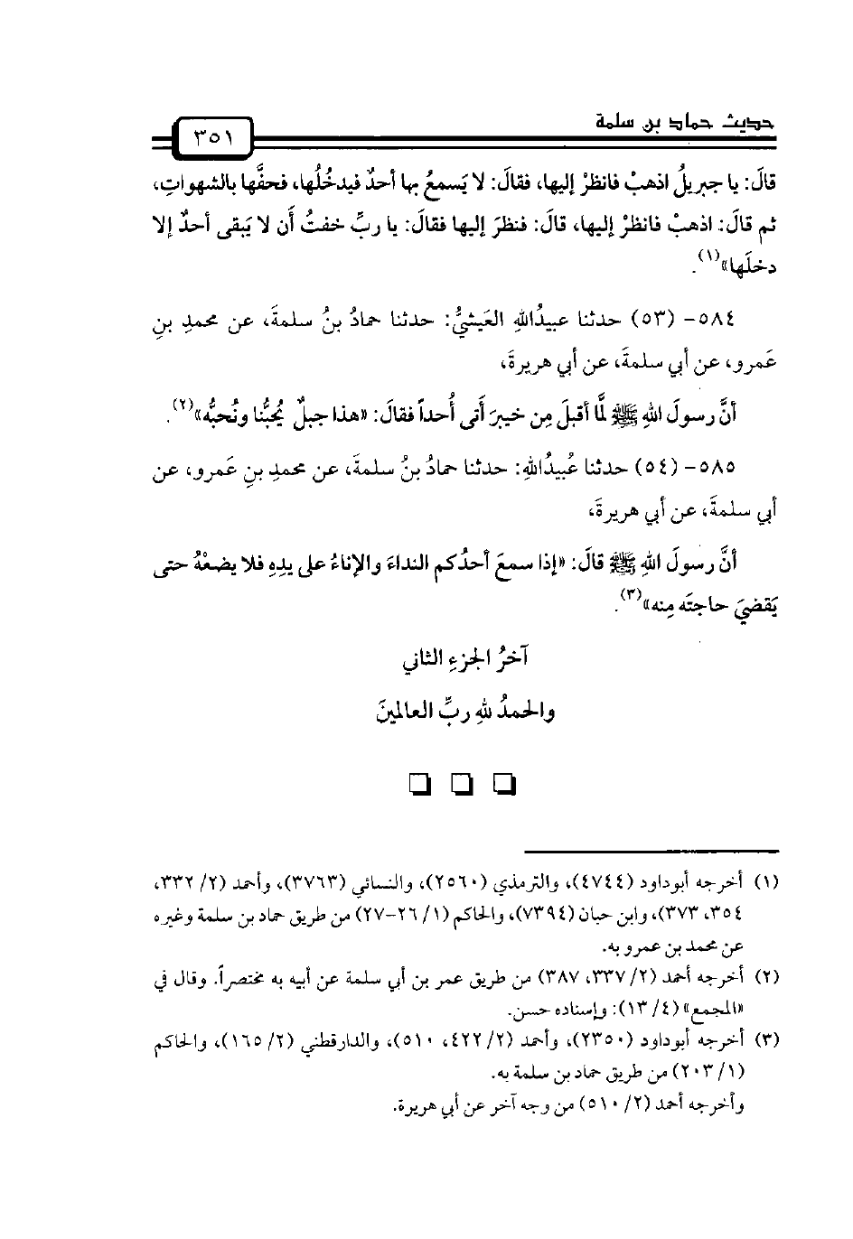 584 - (53) حدثنا عبيدُاللهِ العَيشيُّ: حدثنا حمادُ بنُ سلمةَ، عن محمدِ بنِ عَمرو، عن أبي سلمةَ، عن أبي هريرةَ،
