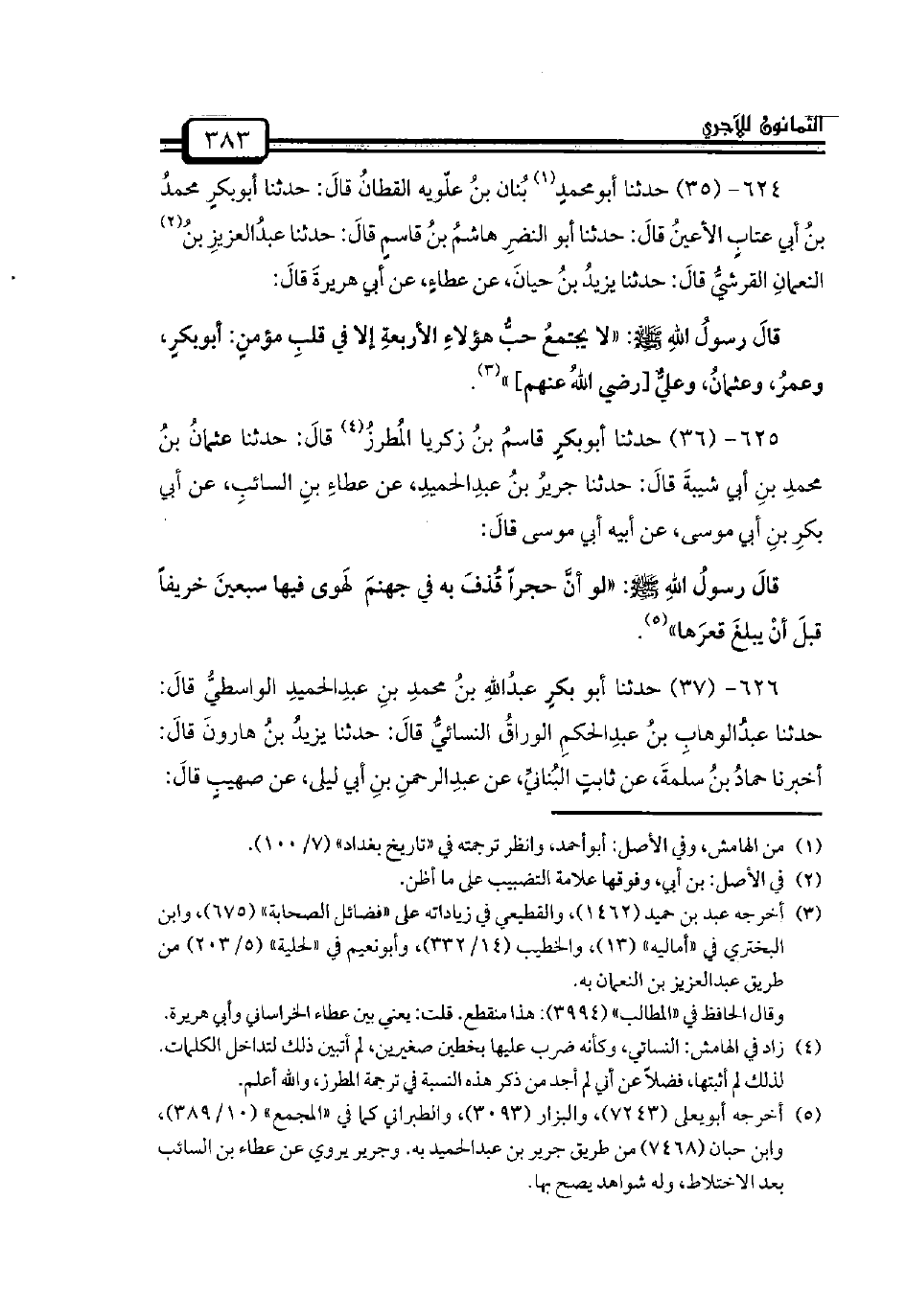 624 - (35) حدثنا أبومحمدٍ بُنان بنُ علّويه القطانُ قالَ: حدثنا أبوبكرٍ محمدُ بنُ أبي عتابٍ الأعينُ قالَ: حدثنا أبو النضرِ هاشمُ بنُ قاسمٍ قالَ: حدثنا عبدُالعزيزِ بنُ النعمانِ القرشيُّ قالَ: حدثنا يزيدُ بنُ حيانَ، عن عطاءٍ، عن أبي هريرةَ قالَ: