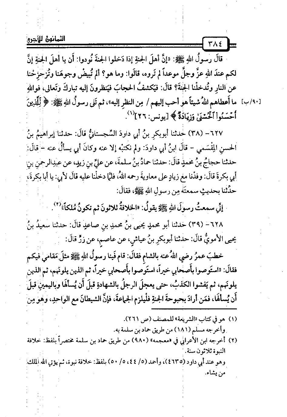 628 - (39) حدثنا أبو محمدٍ يحيى بنُ محمدِ بنِ صاعدٍ قالَ: حدثنا سعيدُ بنُ يحيى الأمويُّ قالَ: حدثنا أبوبكرِ بنُ عياشٍ، عن عاصمٍ، عن زرٍّ قالَ: