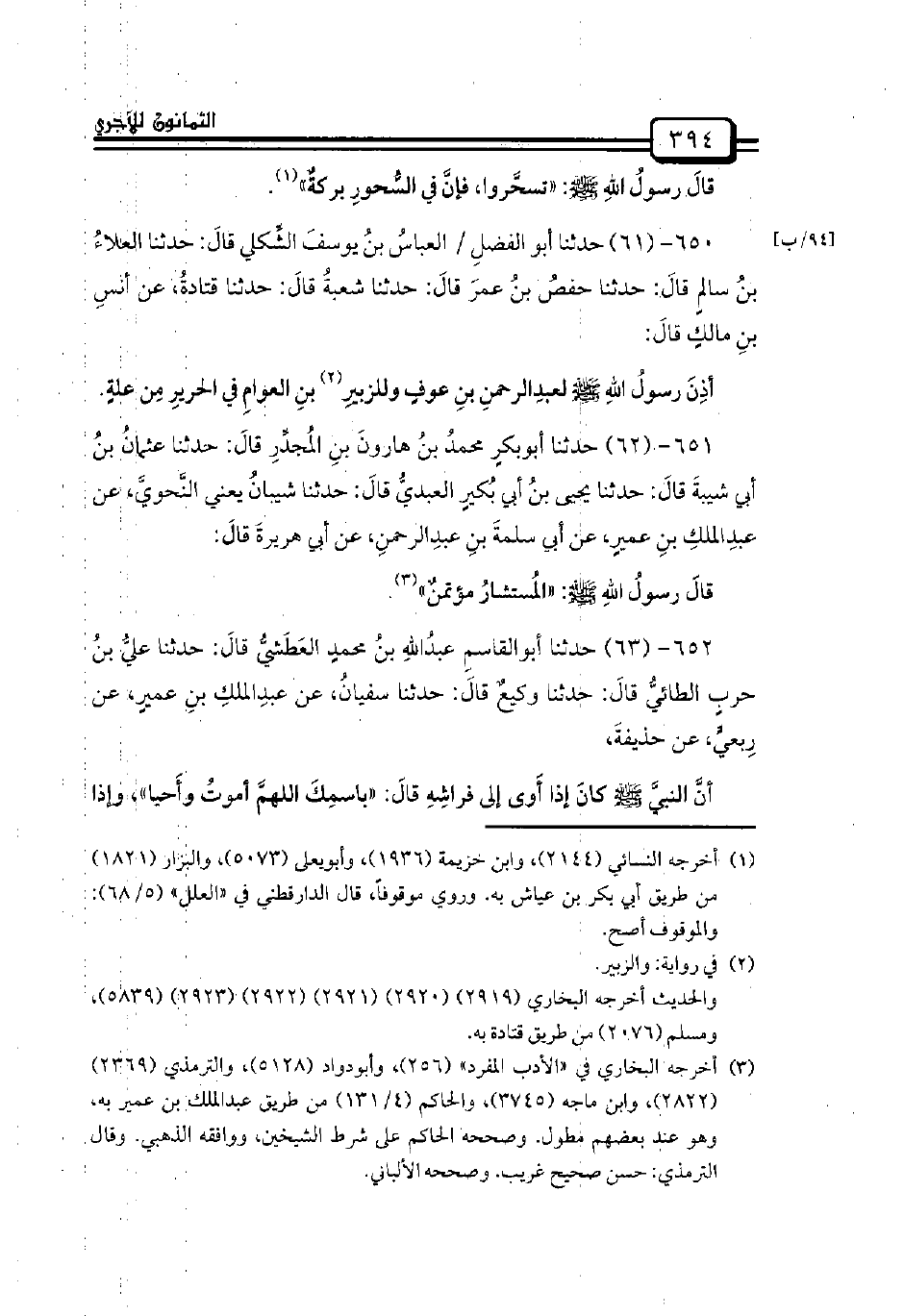 650 - (61) حدثنا أبو الفضلِ / العباسُ بنُ يوسفَ الشِّكلي قالَ: حدثنا العلاءُ بنُ سالمٍ قالَ: حدثنا حفصُ بنُ عمرَ قالَ: حدثنا شعبةُ قالَ: حدثنا قتادةُ، عن أنسِ بنِ مالكٍ قالَ: