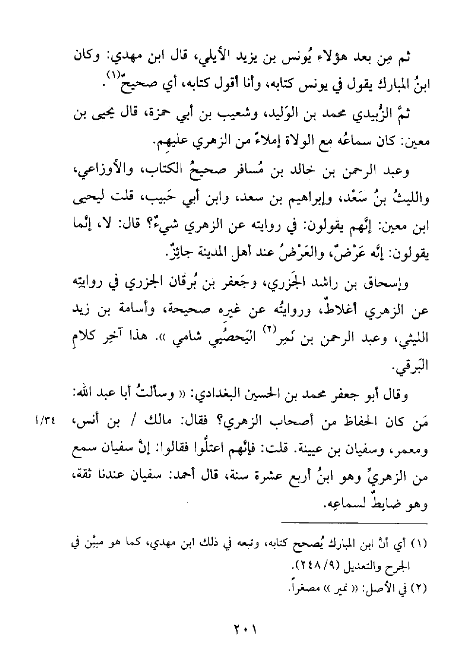 وعبد الرحمن بن خالد بن مسافر صحيح الكتاب، والأوزاعي، والليث بن سعد، وإبراهيم بن سعد، وابن أبي حبيب، قلت ليحيى ابن معين: إنهم يقولون: في روايته عن الزهري شيءٌ؟ قال: لا، إنما يقولون: إنه عرضٌ، والعرض عند أهل المدينة جائزٌ.