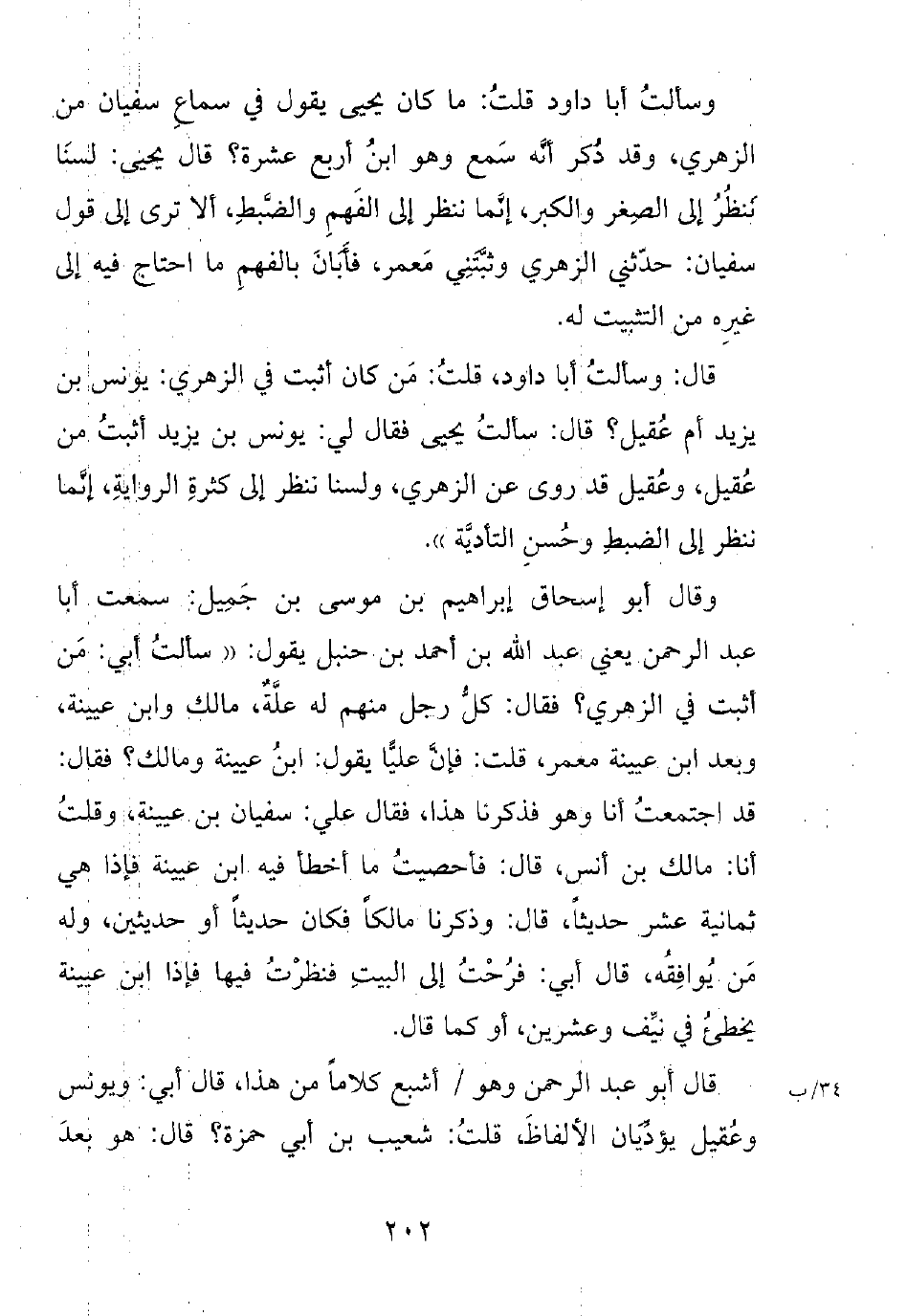 قال أبو عبد الرحمن وهو أشبع كلاماً من هذا، قال أبي: ويونس وعقيل يؤديان الألفاظ، قلت: شعيب بن أبي حمزة؟ قال: هو بعد