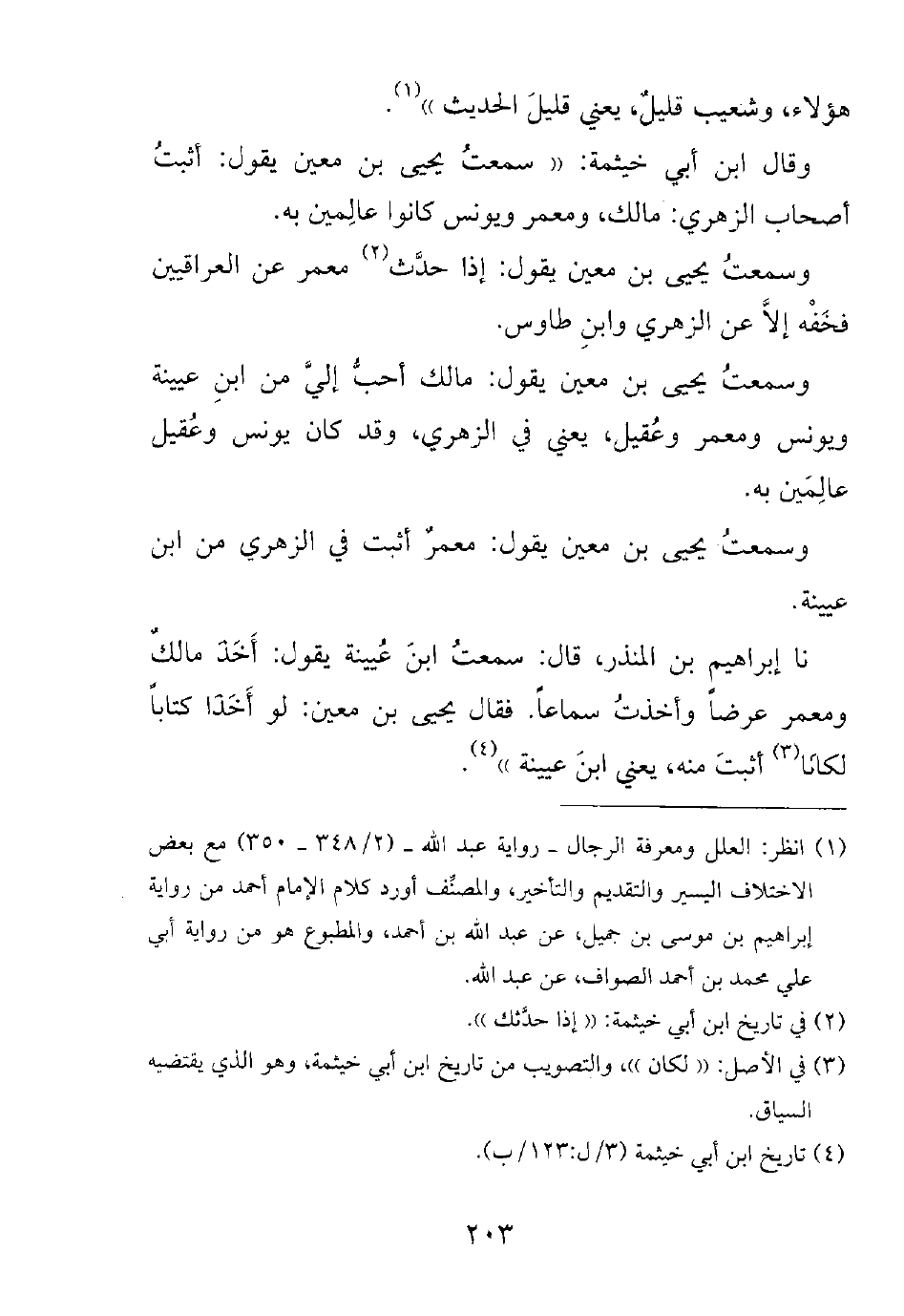 وقال ابن أبي خيثمة: ((سمعت يحيى بن معين يقول: أثبت أصحاب الزهري: مالك، ومعمر ويونس كانوا عالمين به.
