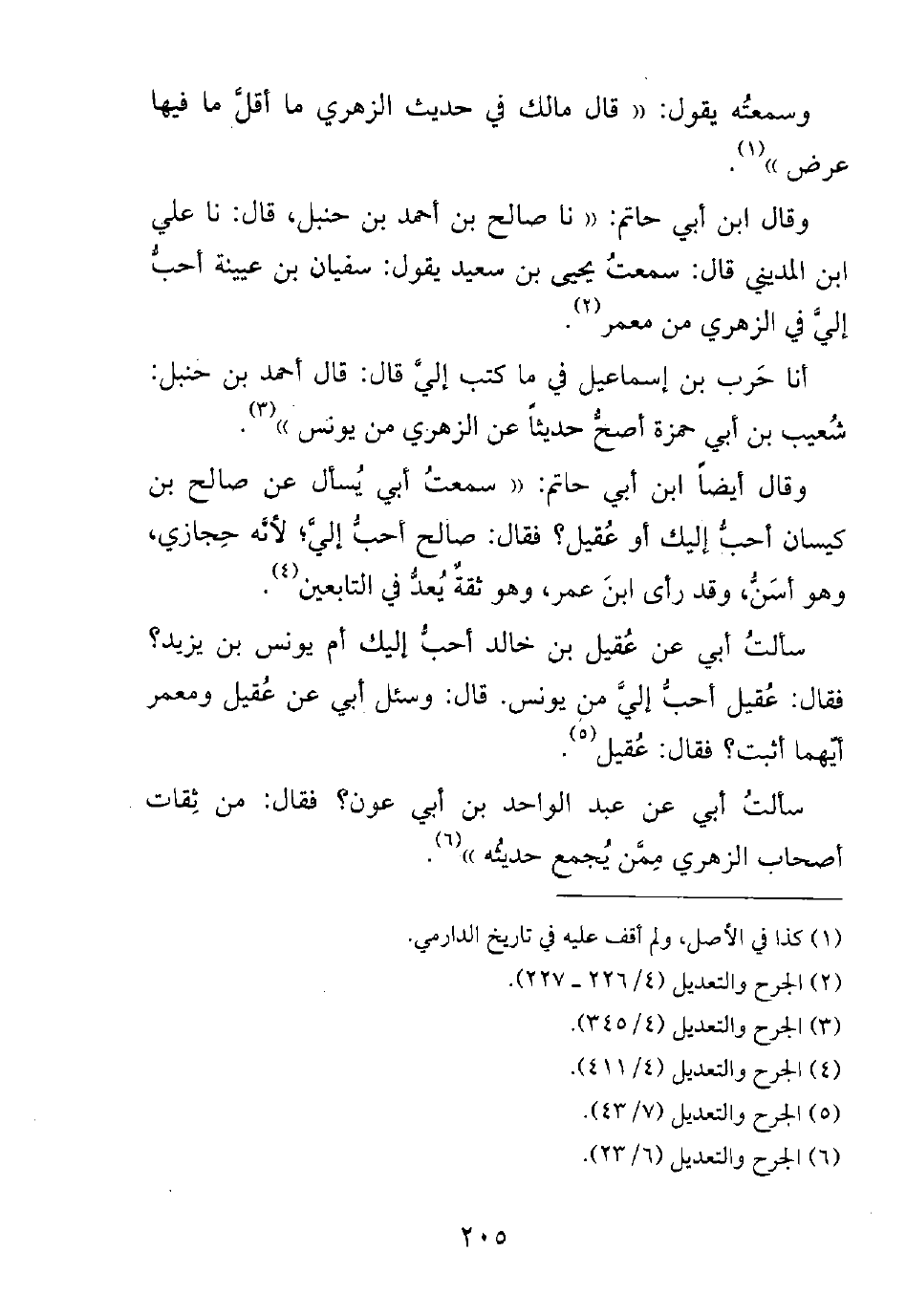 وقال ابن أبي حاتم: ((نا صالح بن أحمد بن حنبل، قال: نا علي ابن المديني قال: سمعت يحيى بن سعيد يقول: سفيان بن عيينة أحب إلي في الزهري من معمر.