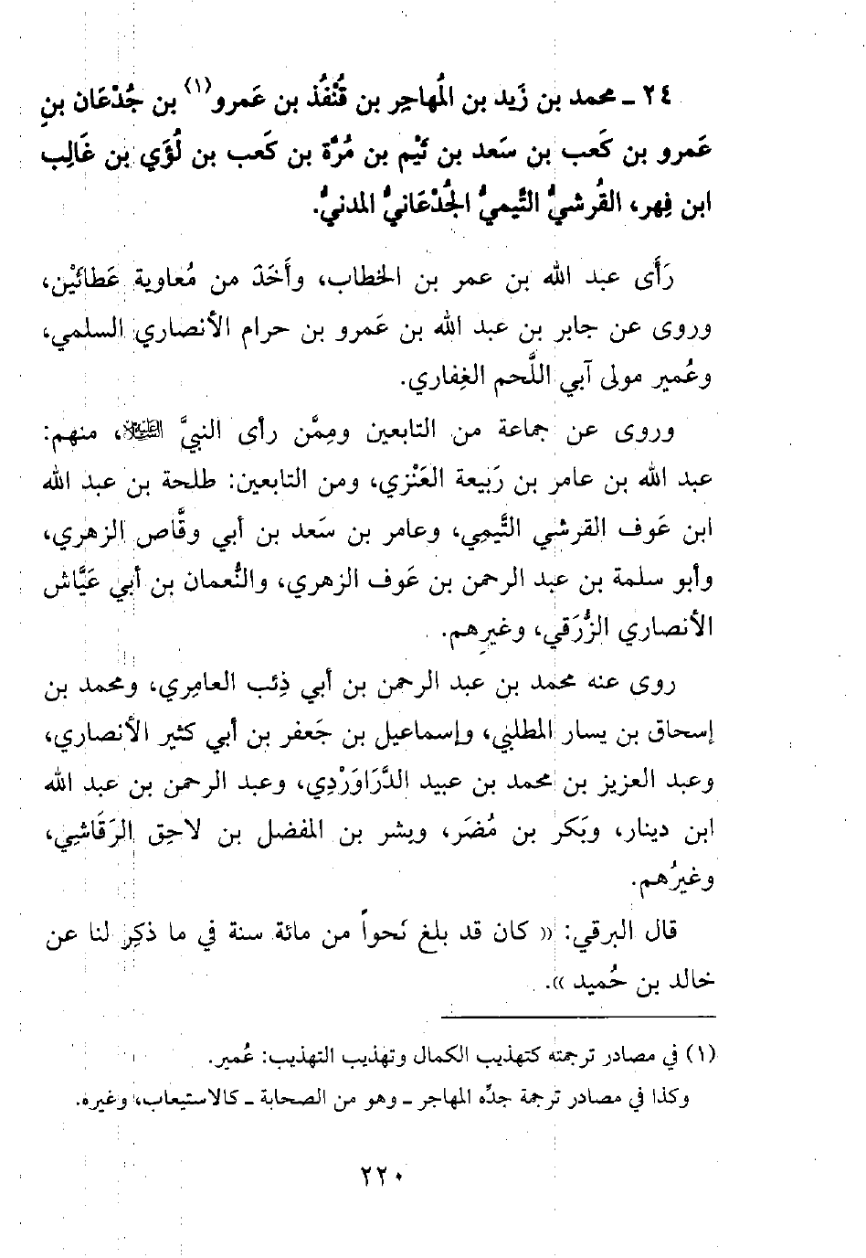 24- محمد بن زيد بن المهاجر بن قنفذ بن عمرو بن جدعان بن عمرو بن كعب بن سعد بن تيم بن مرة بن كعب بن لؤي بن غالب ابن فهر، القرشي التيمي الجدعاني المدني.