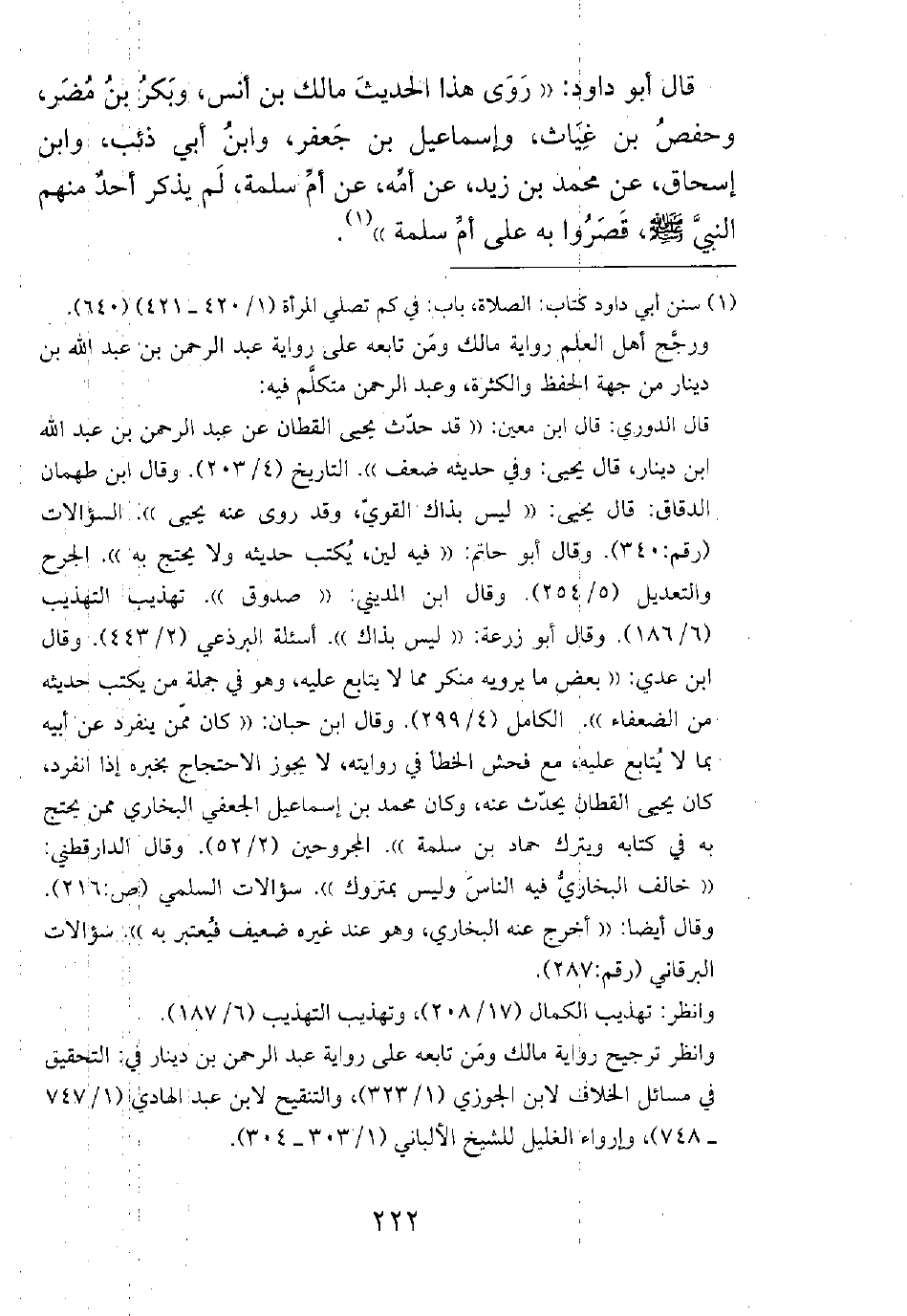 قال أبو داود: ((روى هذا الحديث مالك بن أنس، وبكر بن مضر، وحفص بن غياث، وإسماعيل بن جعفر، وابن أبي ذئب، وابن إسحاق، عن محمد بن زيد، عن أمه، عن أم سلمة، لم يذكر أحدٌ منهم النبي صلى الله عليه وسلم، قصروا به على أم سلمة)).
