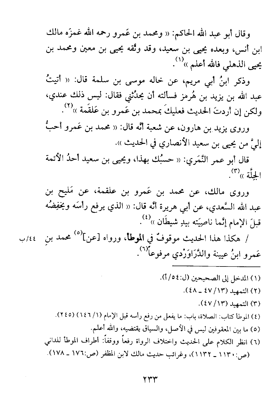 وروى مالك، عن محمد بن عمرو بن علقمة، عن مليح بن عبد الله السعدي، عن أبي هريرة أنه قال: ((الذي يرفع رأسه ويخفضه قبل الإمام إنما ناصيته بيد الشيطان)).