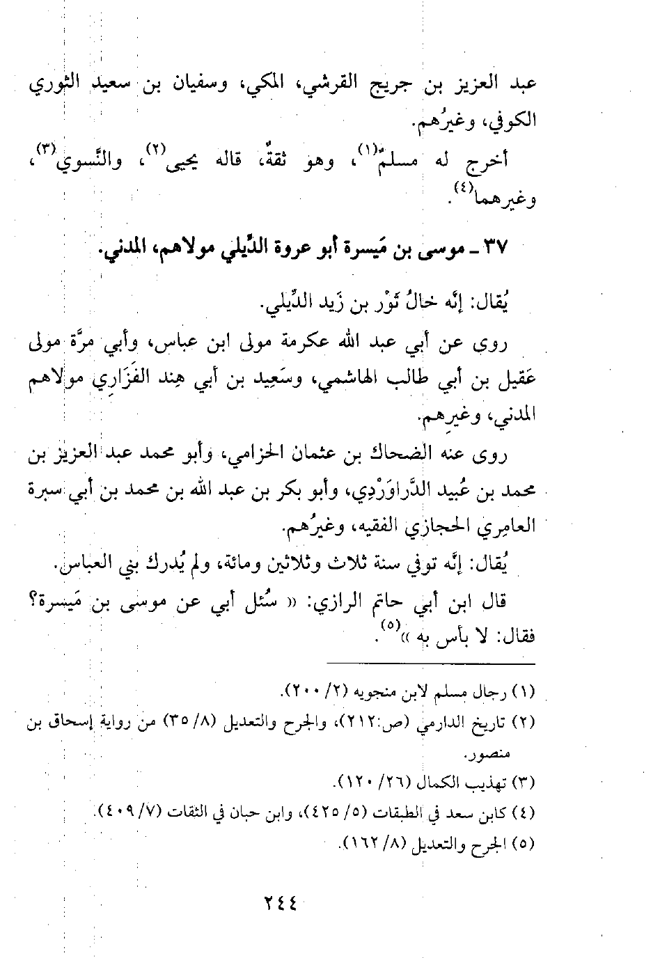 37- موسى بن ميسرة أبو عروة الديلي مولاهم، المدني.