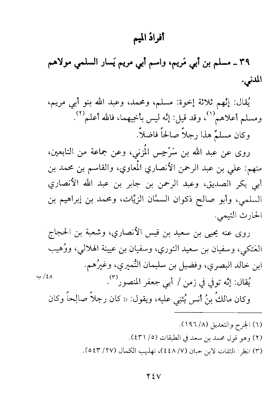 39- مسلم بن أبي مريم، واسم أبي مريم يسار السلمي مولاهم المدني.