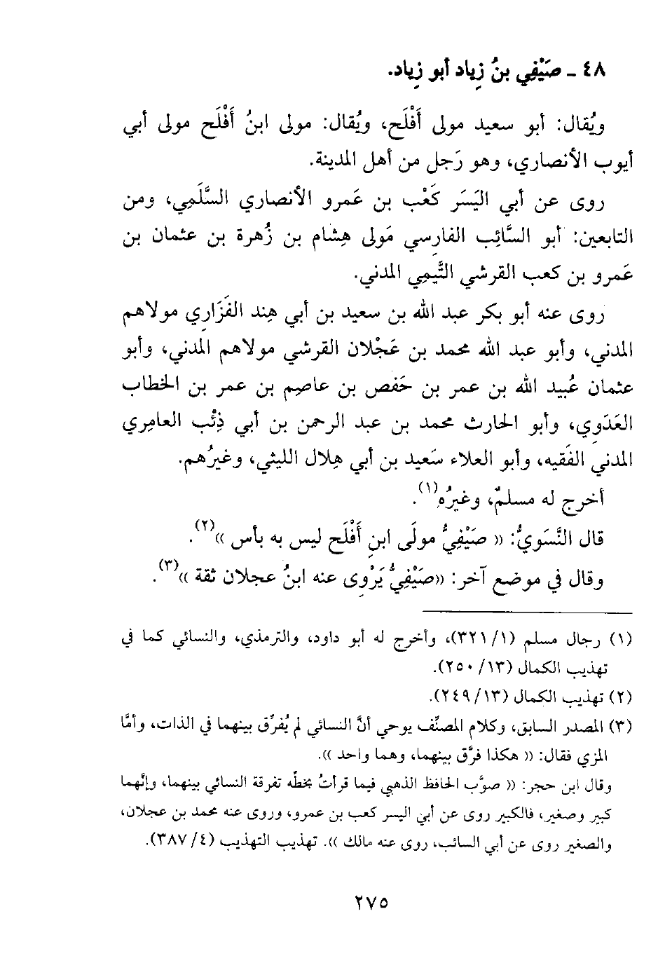 قال النسوي: ((صيفي مولى ابن أفلح ليس به بأس)).