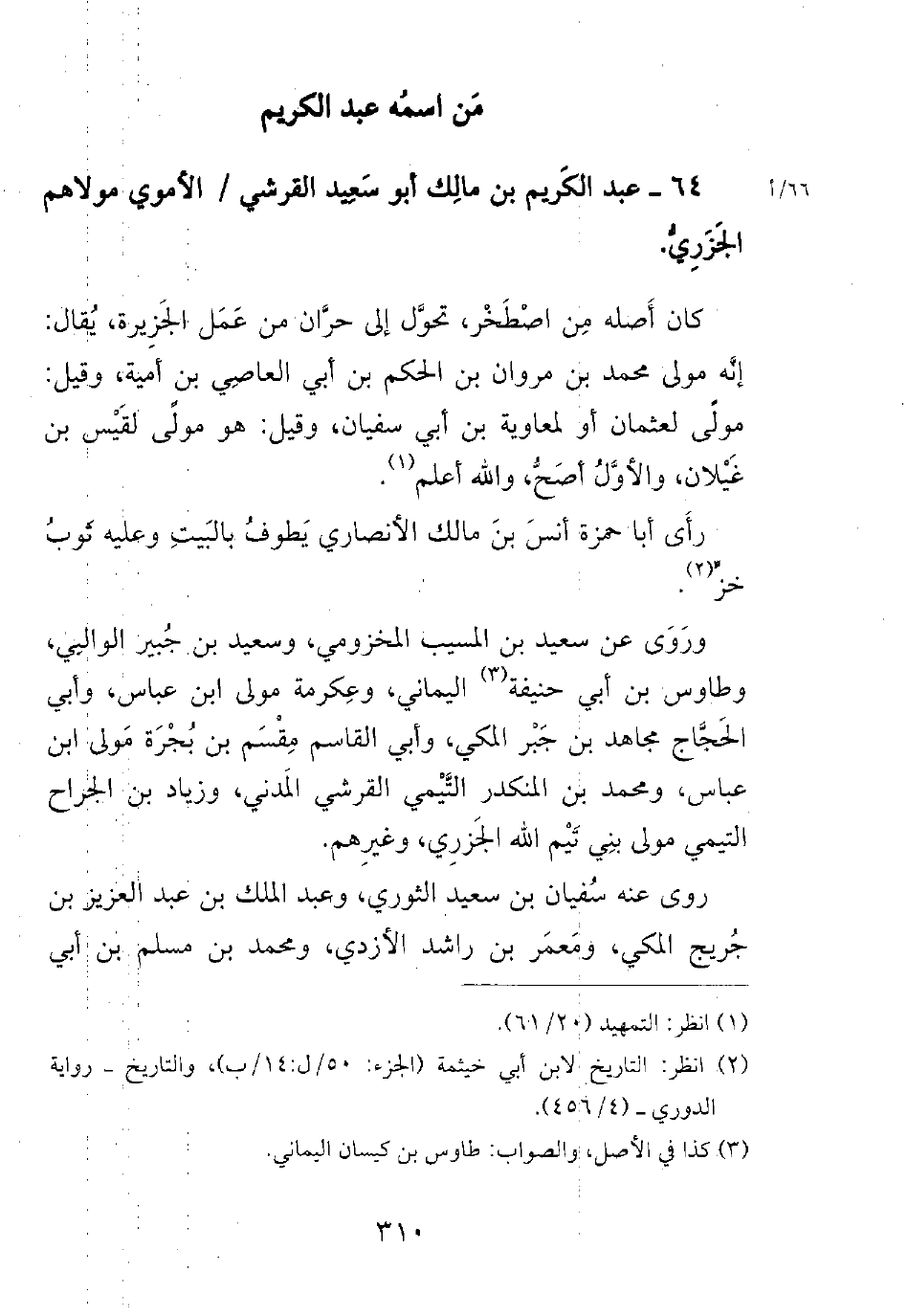 64- عبد الكريم بن مالك أبو سعيد القرشي الأموي مولاهم الجزري.