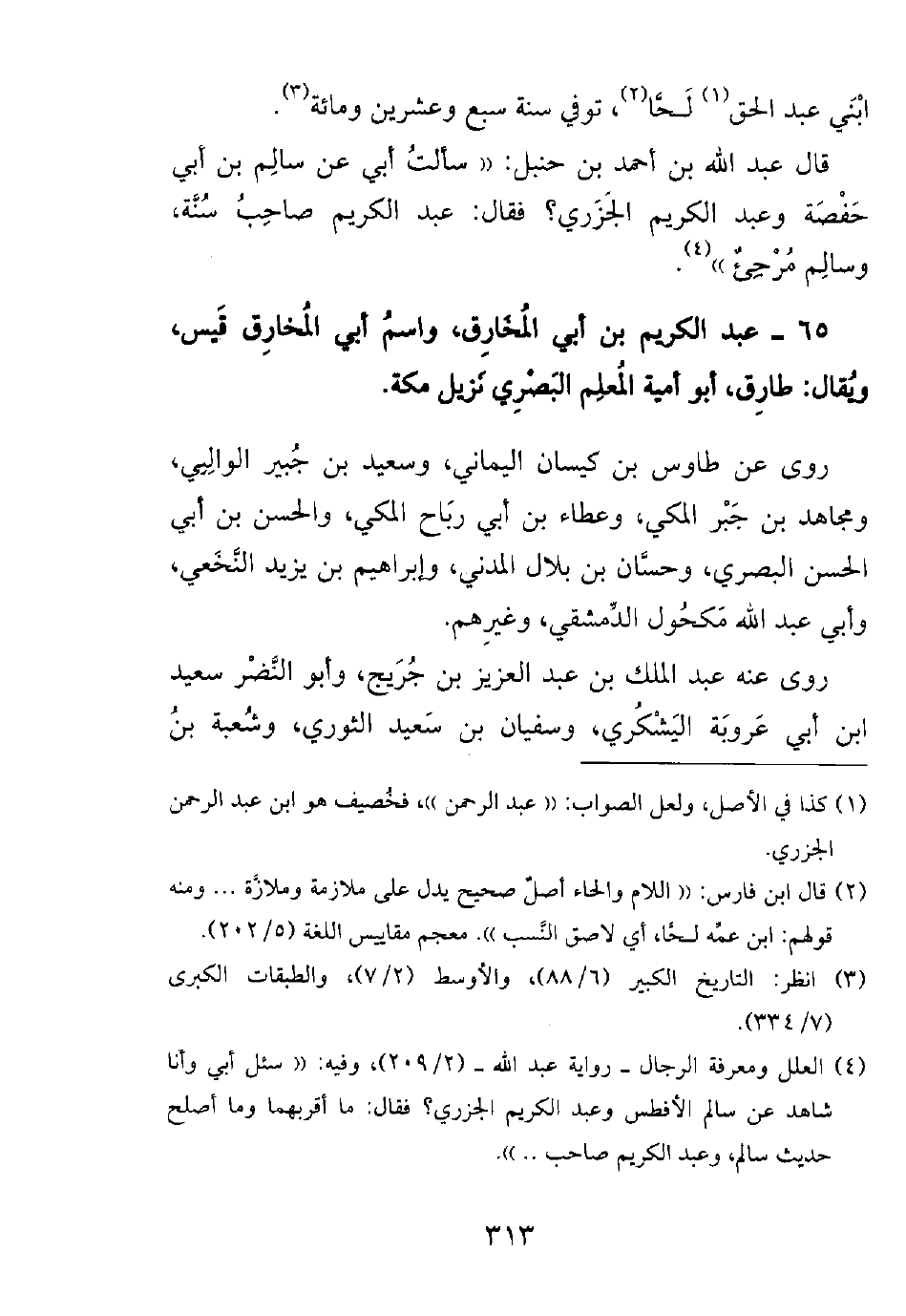 65- عبد الكريم بن أبي المخارق، واسم أبي المخارق قيس، ويقال: طارق، أبو أمية المعلم البصري نزيل مكة.