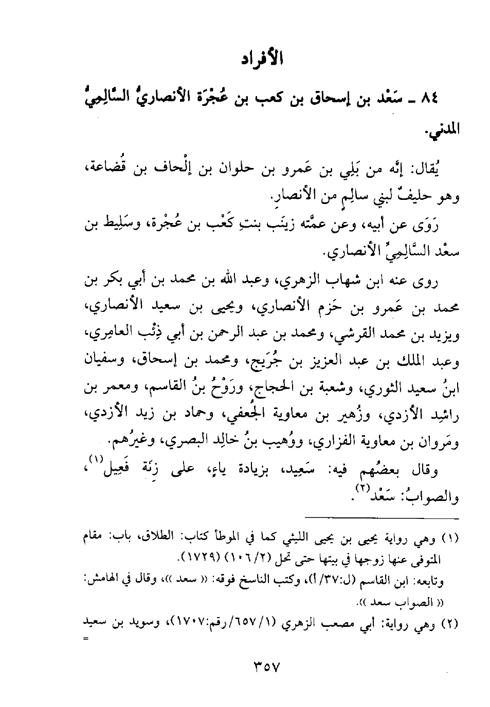84- سعد بن إسحاق بن كعب بن عجرة الأنصاري السالمي المدني.