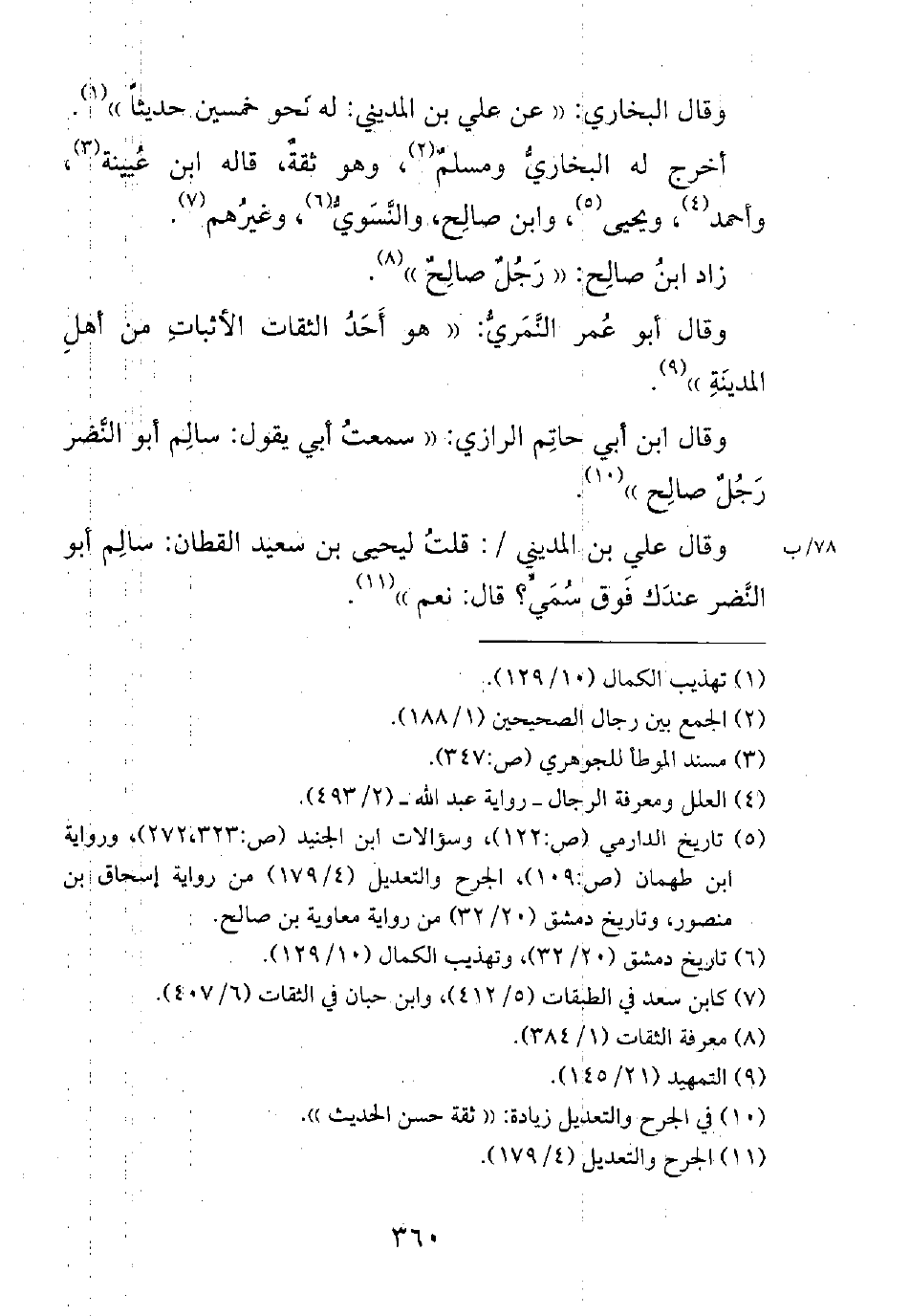 وقال ابن أبي حاتم الرازي: ((سمعت أبي يقول: سالم أبو النضر رجلٌ صالح)).