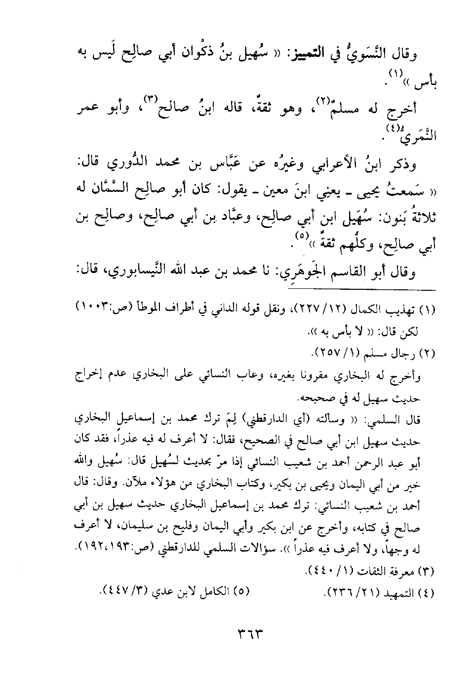 وقال النسوي في التمييز: ((سهيل بن ذكوان أبي صالح ليس به بأس)).