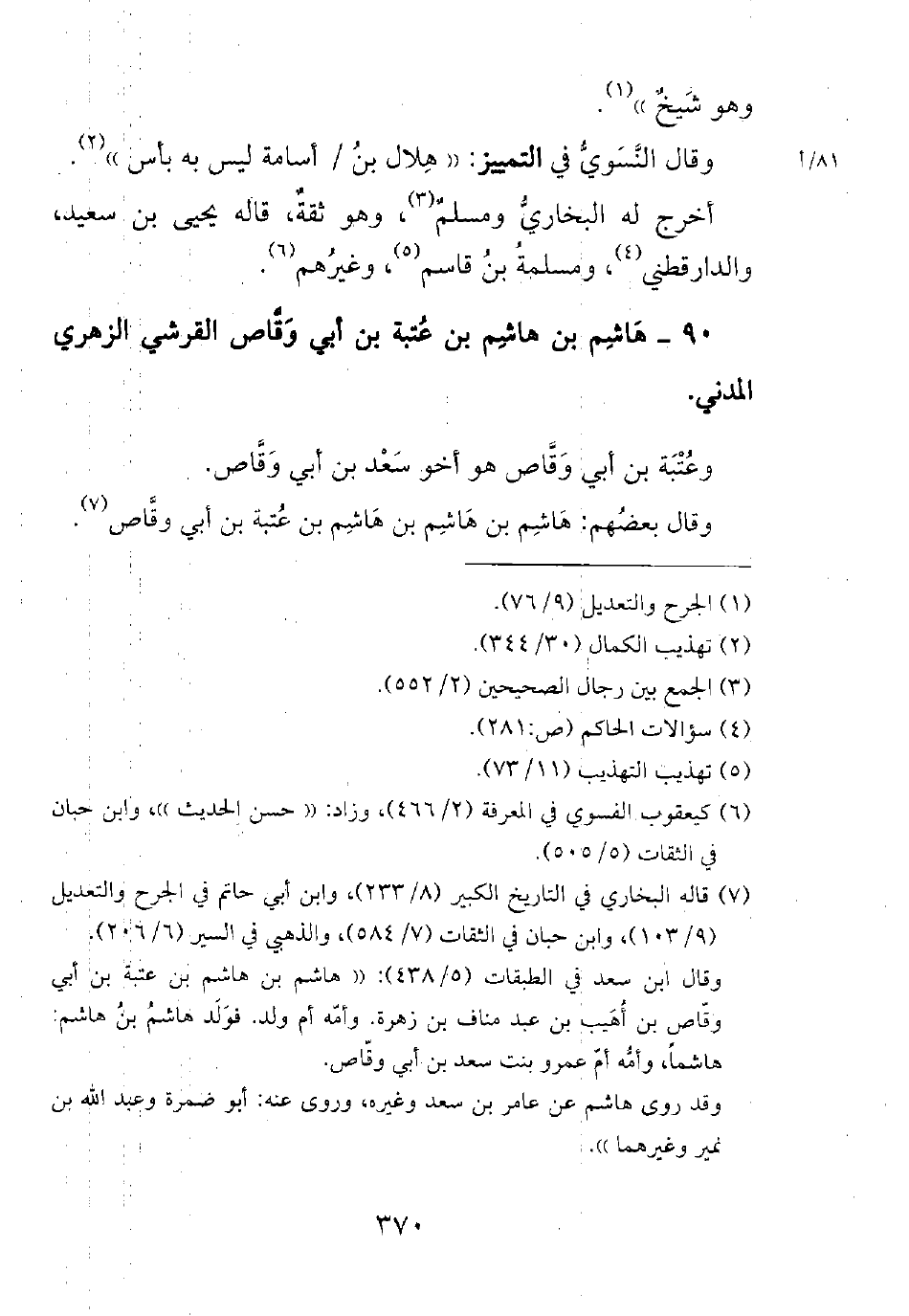 90- هاشم بن هاشم بن عتبة بن أبي وقاص القرشي الزهري المدني.