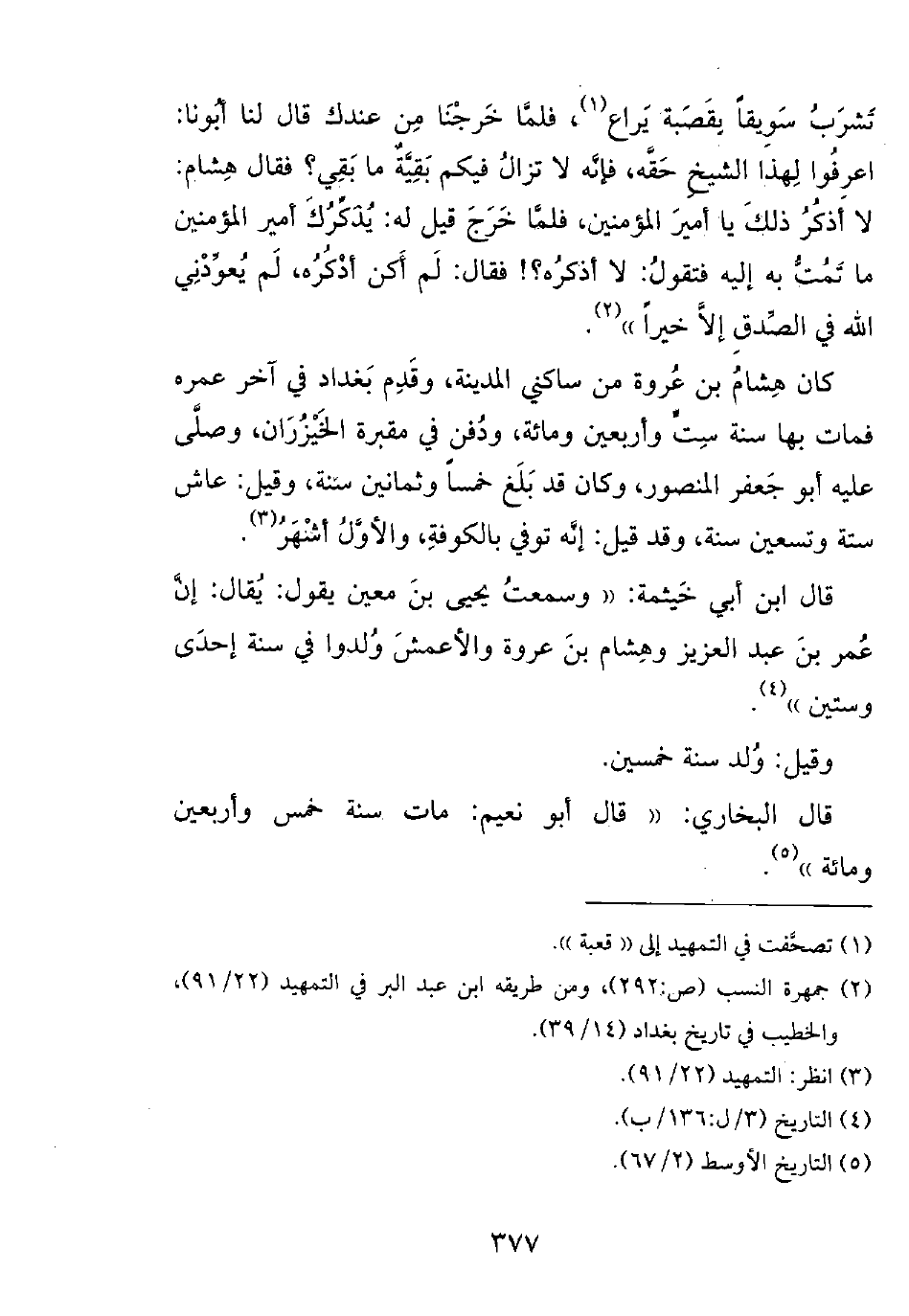 تشرب سويقاً بقصبة يراع، فلما خرجنا من عندك قال لنا أبونا: اعرفوا لهذا الشيخ حقه، فإنه لا تزال فيكم بقيةٌ ما بقي؟ فقال هشام: لا أذكر ذلك يا أمير المؤمنين، فلما خرج قيل له: يذكرك أمير المؤمنين ما تمت به إليه فتقول: لا أذكره؟! فقال: لم أكن أذكره، لم يعودني الله في الصدق إلا خيراً)).