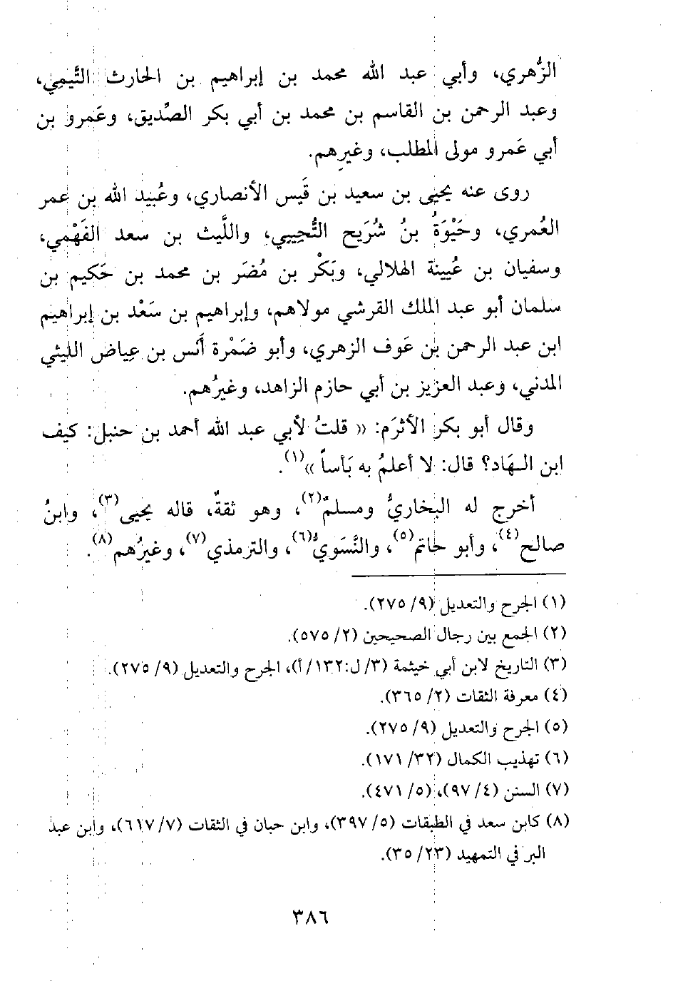 وقال أبو بكر الأثرم: ((قلت لأبي عبد الله أحمد بن حنبل: كيف ابن الهاد؟ قال: لا أعلم به بأساً)).