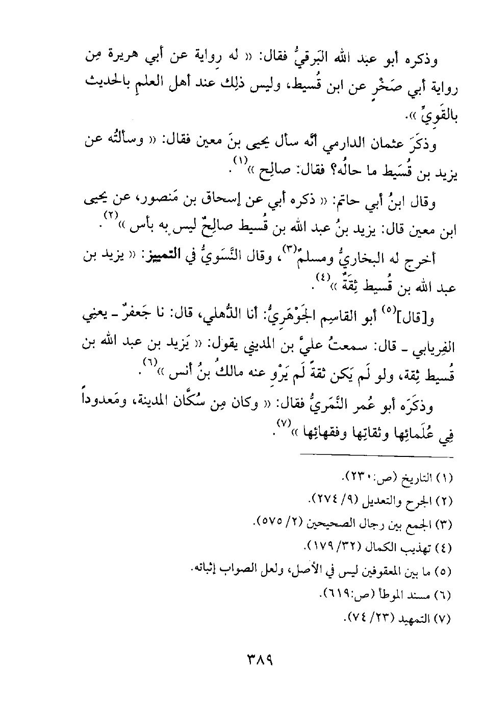 وذكر عثمان الدارمي أنه سأل يحيى بن معين فقال: ((وسألته عن يزيد بن قسيط ما حاله؟ فقال: صالح)).