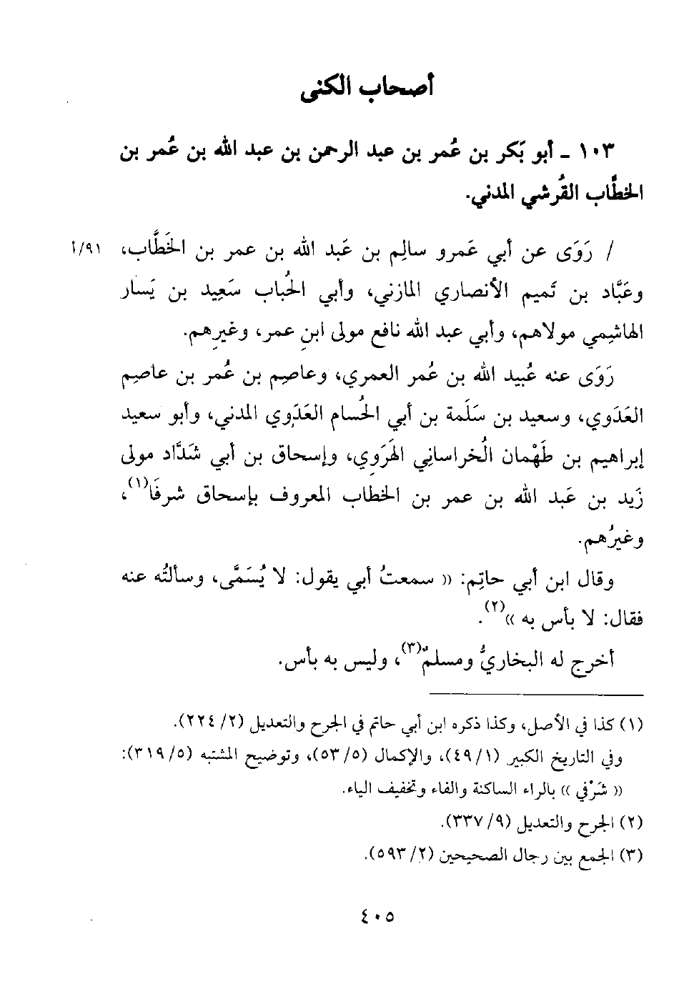 103 - أبو بكر بن عمر بن عبد الرحمن بن عبد الله بن عمر بن الخطاب القرشي المدني.