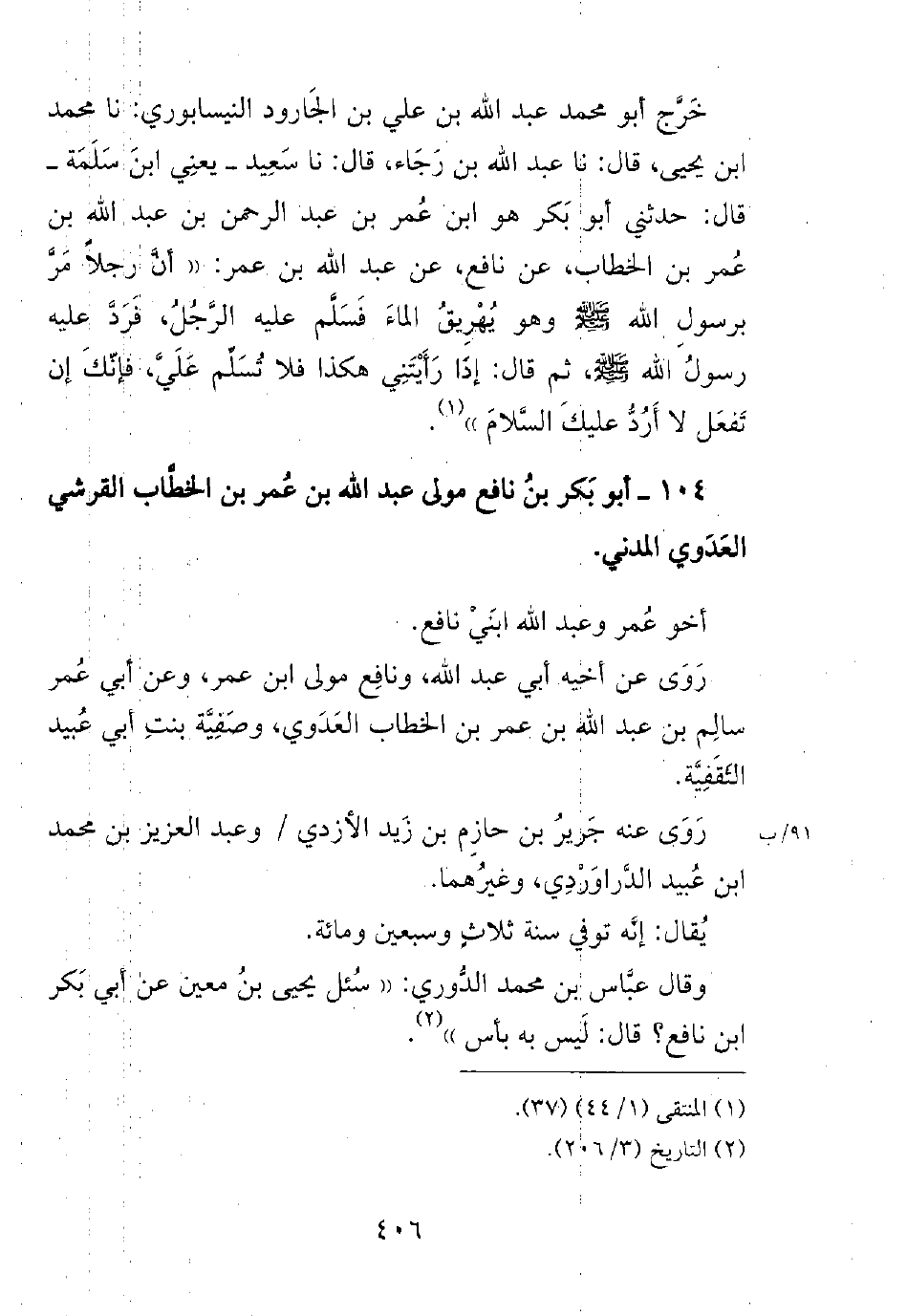 104- أبو بكر بن نافع مولى عبد الله بن عمر بن الخطاب القرشي العدوي المدني.