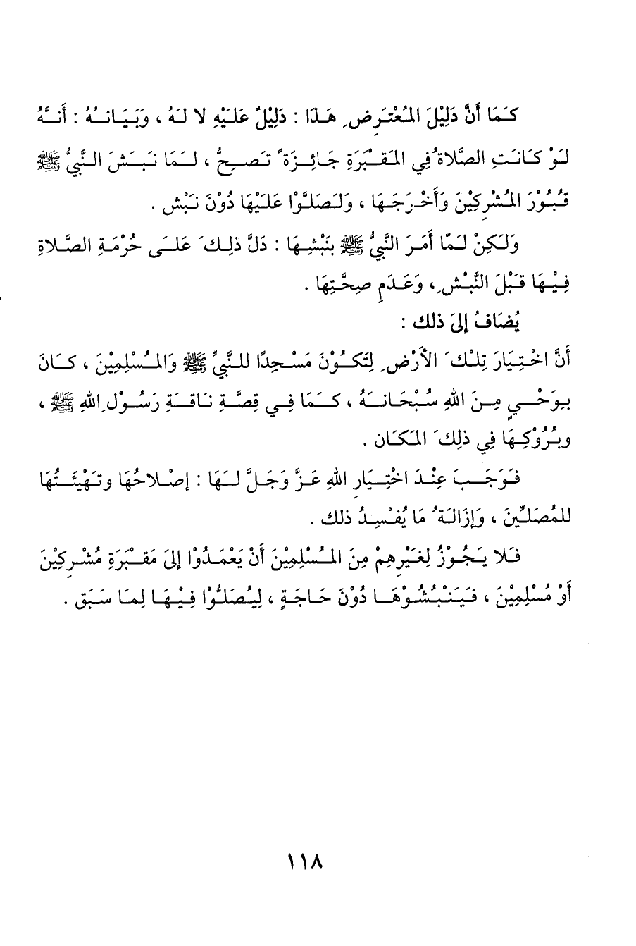 كمَا أَنَّ دَلِيْلَ المعْترِض ِ هَذَا: دَلِيْلٌ عَليْهِ لا لهُ، وَبَيَانهُ: أَنهُ لوْ كانتِ الصَّلاة ُفِي المقبَرَةِ جَائِزَة ً تصحُّ، لمَا نبشَ النَّبيُّ صَلَّى اللَّهُ عَلَيْهِ وَسَلَّمَ قبوْرَ المشْرِكِيْنَ وَأَخْرَجَهَا، وَلصَلوْا عَليْهَا دُوْنَ نبْش.