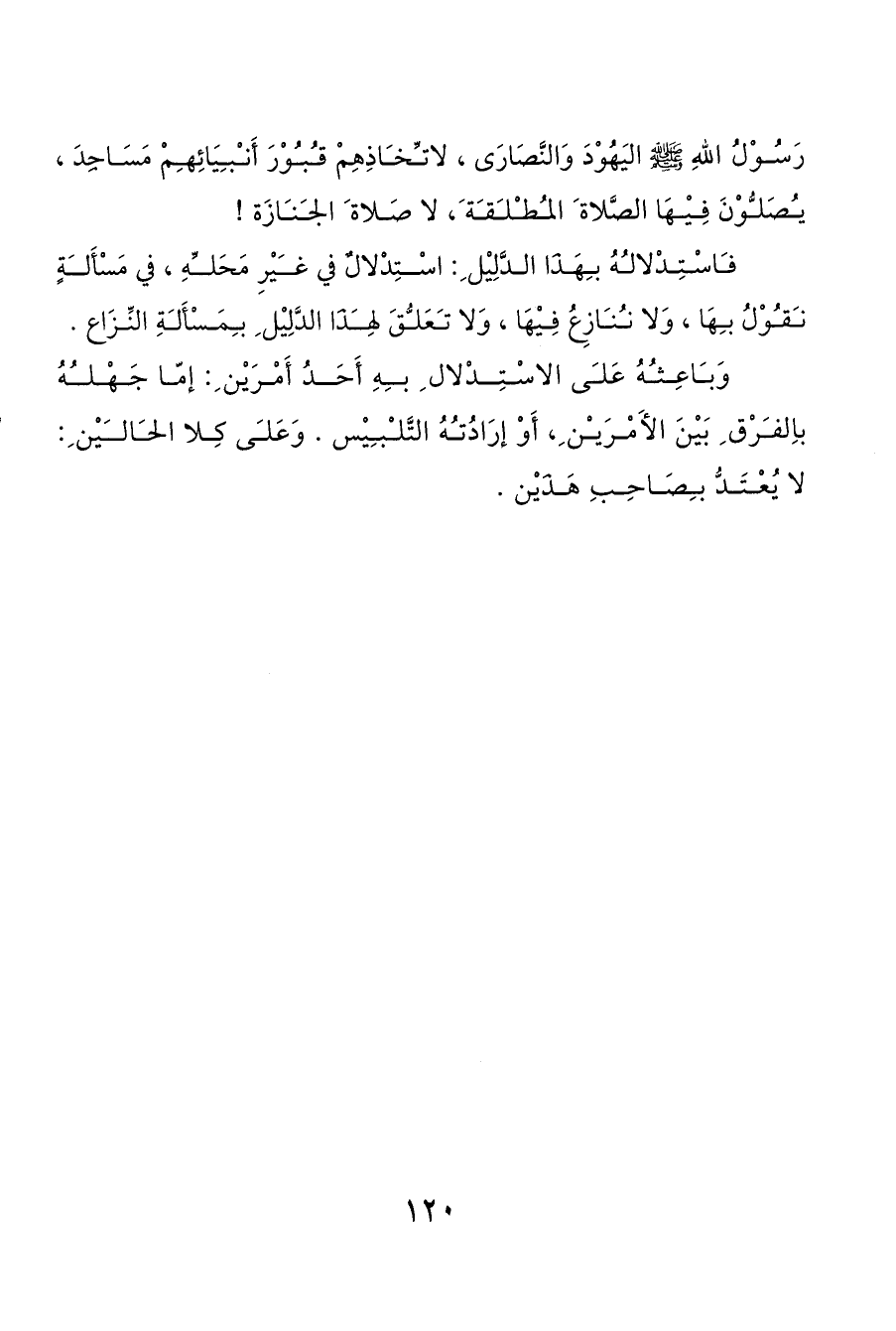 رَسُوْلُ اللهِ صَلَّى اللَّهُ عَلَيْهِ وَسَلَّمَ اليَهُوْدَ وَالنَّصَارَى، لاتخاذِهِمْ قبوْرَ أَنبيَائِهمْ مَسَاجِدَ، يصَلوْنَ فِيْهَا الصَّلاة َ المطلقة َ، لا صَلاة َ الجنازَة!