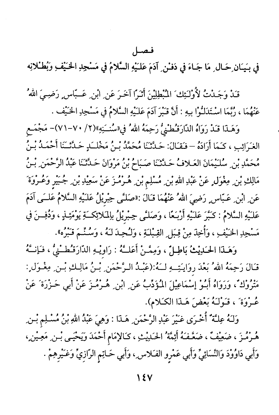 فصل في بيان ِحَال ِ مَا جَاءَ في دَفن ِ آدَمَ عَليْهِ السَّلامُ في مَسْجِدِ الخيْفِ وَبُطلانِه