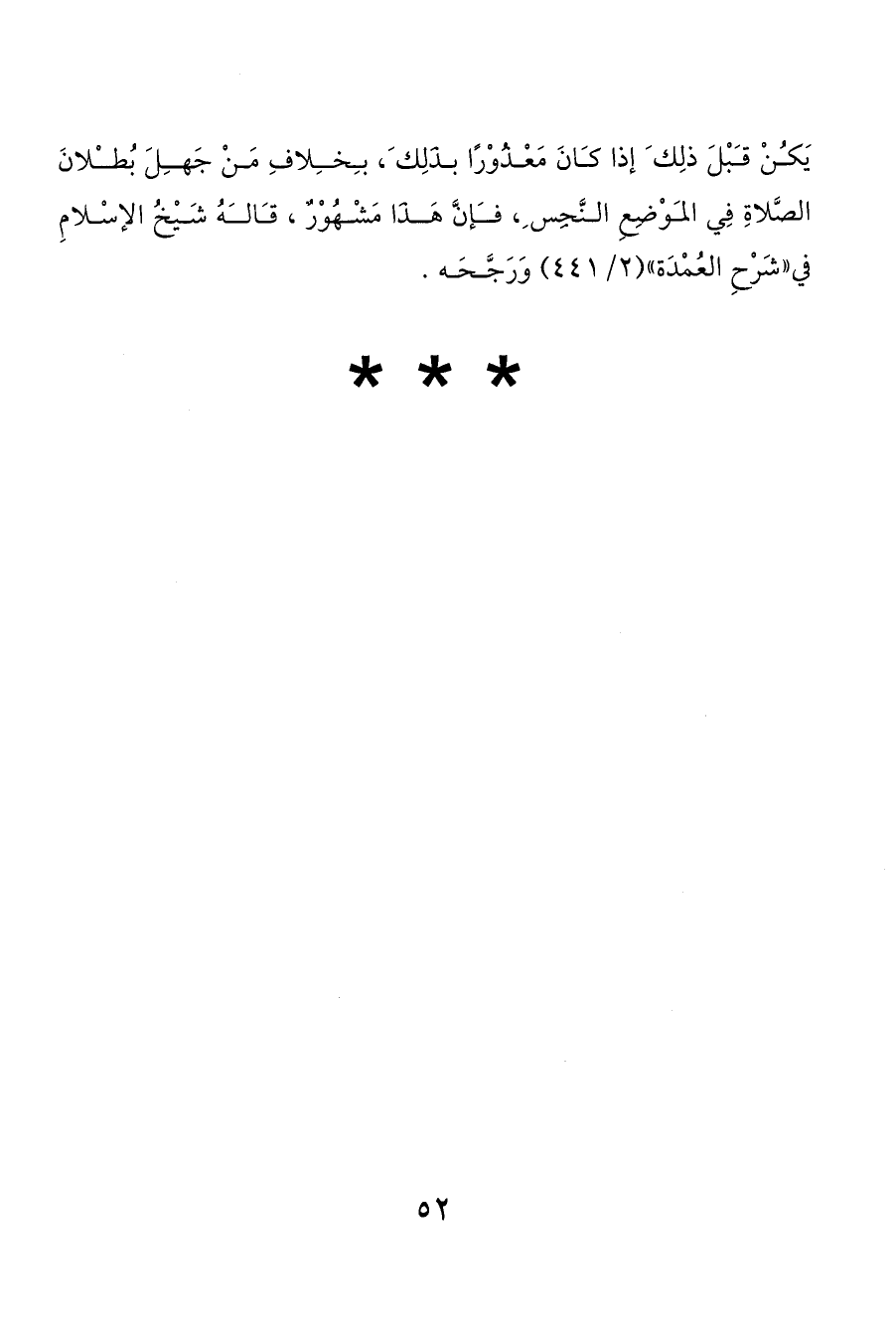 يَكنْ قبْلَ ذلِك َ إذا كانَ مَعْذُوْرًا بذَلِك َ، بخلافِ مَنْ جَهلَ بُطلانَ الصَّلاةِ فِي الموْضِعِ النَّجِس ِ، فإنَّ هَذَا مَشْهُوْرٌ، قالهُ شَيْخُ الإسْلامِ في «شَرْحِ العُمْدَة» (2/ 441) وَرَجَّحَه.