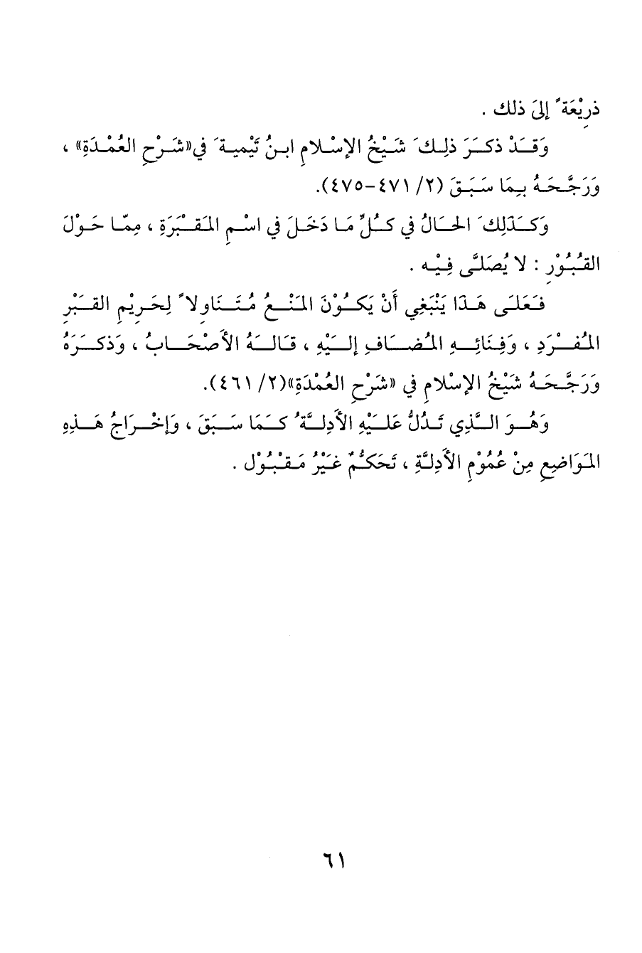 وَقدْ ذكرَ ذلِك َ شَيْخُ الإسْلامِ ابنُ تَيْمية َ في «شَرْحِ العُمْدَةِ»، وَرَجَّحَهُ بمَا سَبَقَ (2/ 471 - 475).