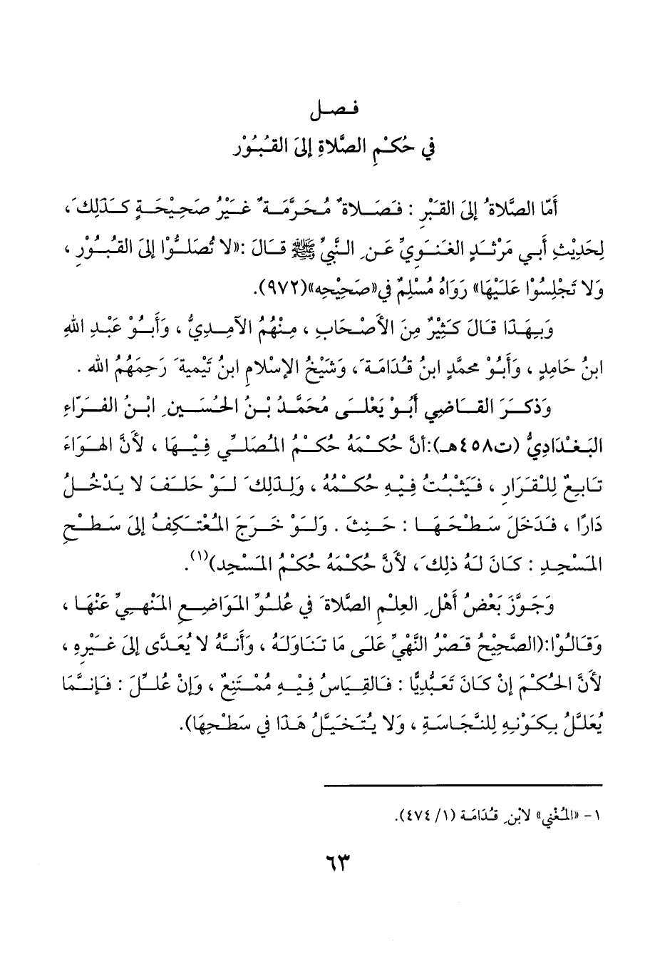 فصل في حُكمِ الصَّلاةِ إلىَ القبوْر