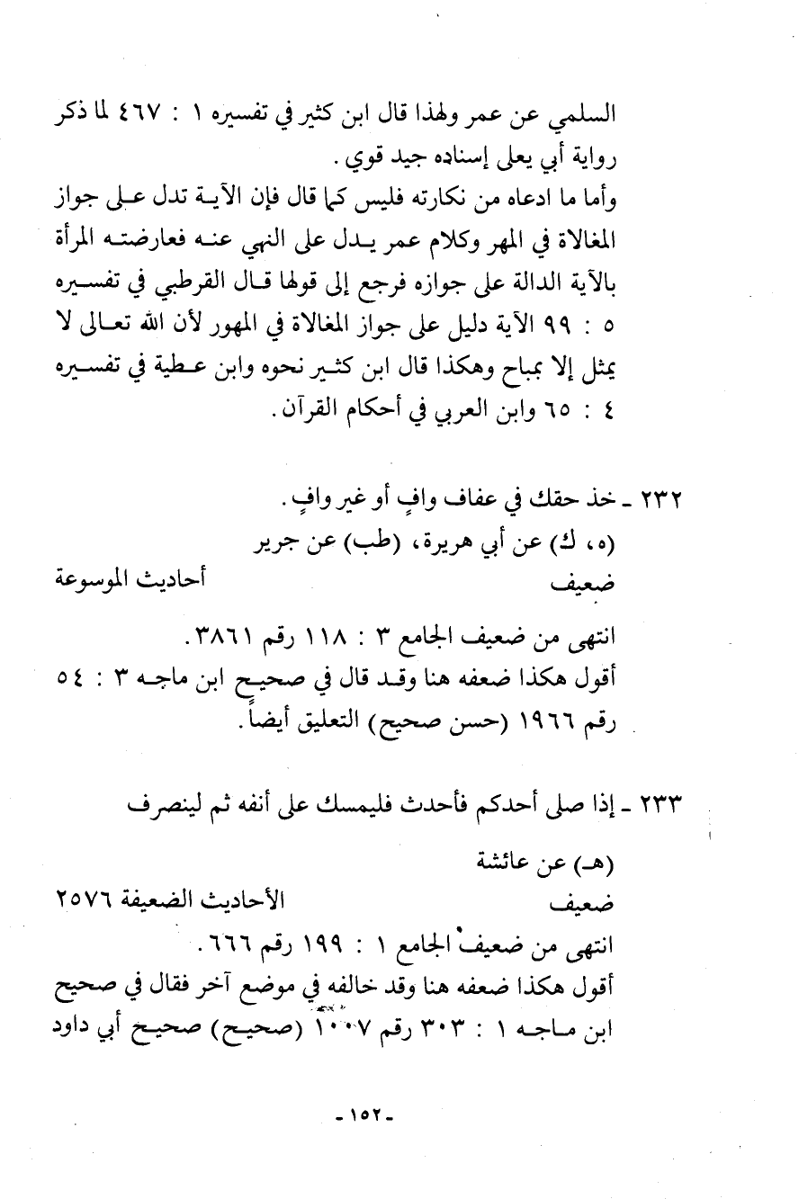 وأما ما ادعاه من نكارته فليس كما قال؛ فإن الآية تدل على جواز المغالاة في المهر، وكلام عمر يدل على النهى عنه فعارضته المرأة بالآية الدالة على جوازه فرجع إلى قولها. قال القرطبي في تفسيره 5: 99 الآية دليل على جواز المغالاة في المهور لأن الله تعالى لا يمثل إلا بمباح وهكذا قال ابن كثير نحوه وابن عطية في تفسيره 4: 65، وابن العربي في أحكام القرآن.