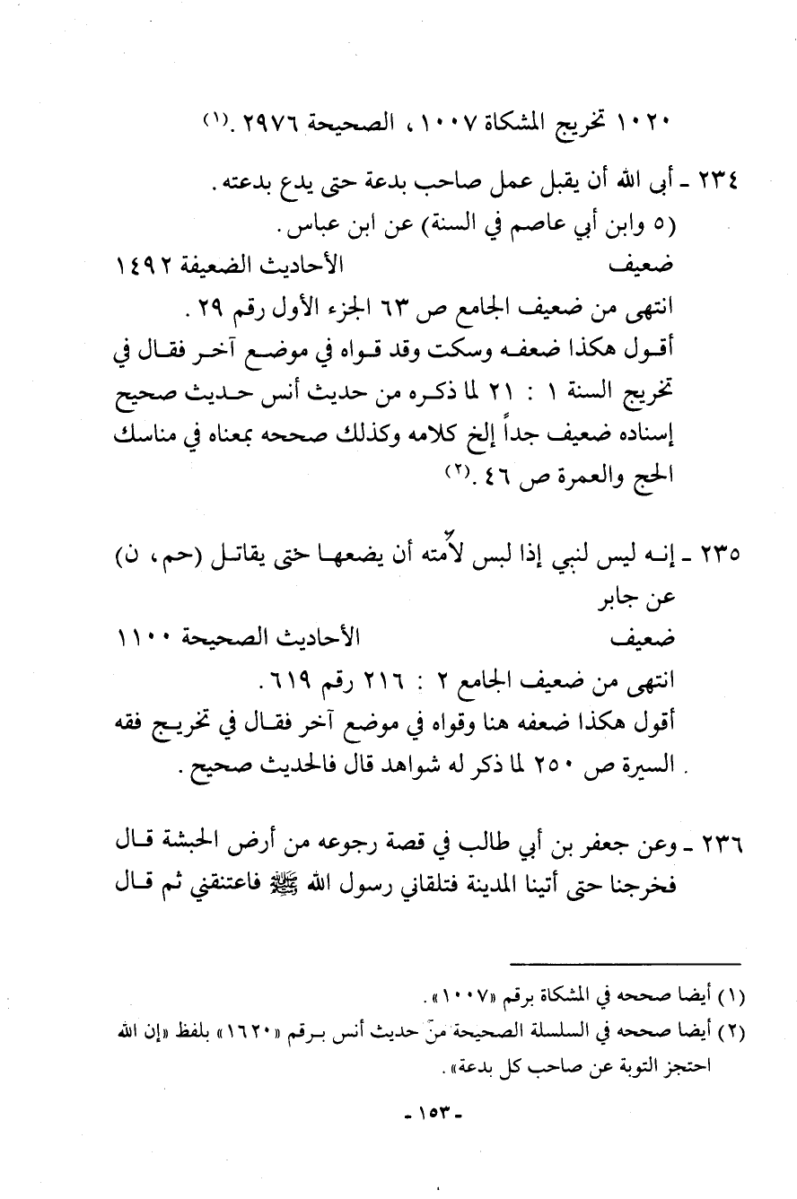 234-: «أبى الله أن يقبل عمل صاحب بدعة حتى يدع بدعته» . (5وابن أبي عاصم في السنة) عن ابن عباس.