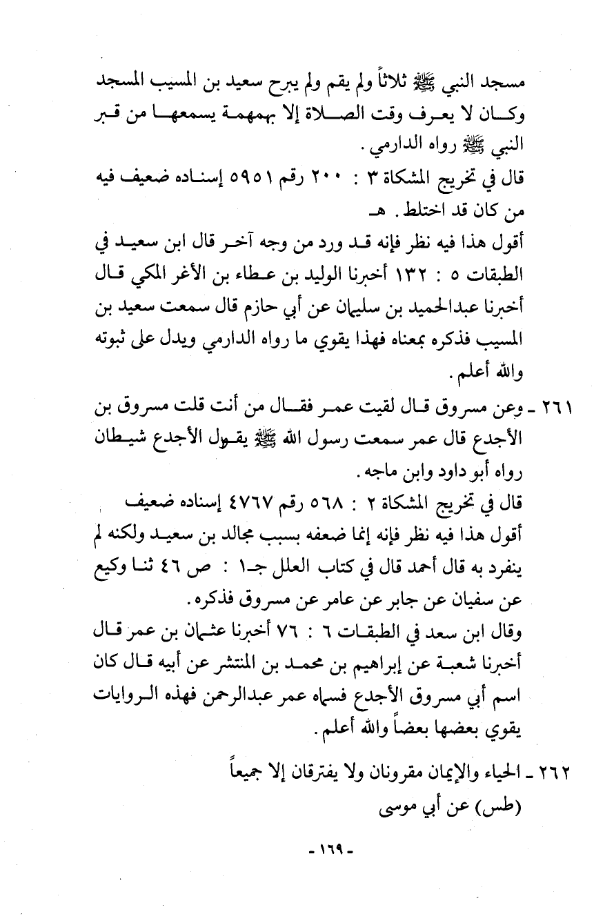 261- وعن مسروق قال: لقيت عمر فقال: من أنت؟ قلت: مسروق بن الأجدع قال: عمر سمعت رسول الله - صلى الله عليه وسلم - يقول (الأجدع شيطان) . رواه داود وابن ماجة.