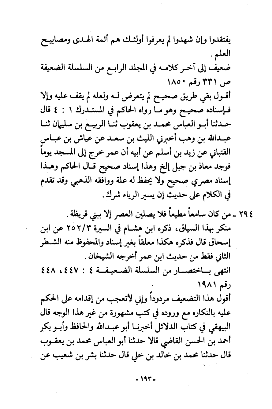أقول: هذا التضعيف مردود، وإني لأتعجب من إقدامه على الحكم عليه بالنكاره مع وروده في كتب مشهورة من غير هذا الوجه قال البيهقي في كتاب الدلائل: أخبرنا أبو عبد الله الحافظ وأبو بكر أحمد بن الحسن القاضي قالا: حدثنا أبو العباس محمد بن يعقوب قال: حدثنا محمد بن خالد بن خلي قال: حدثنا ... بشر بن شعيب عن