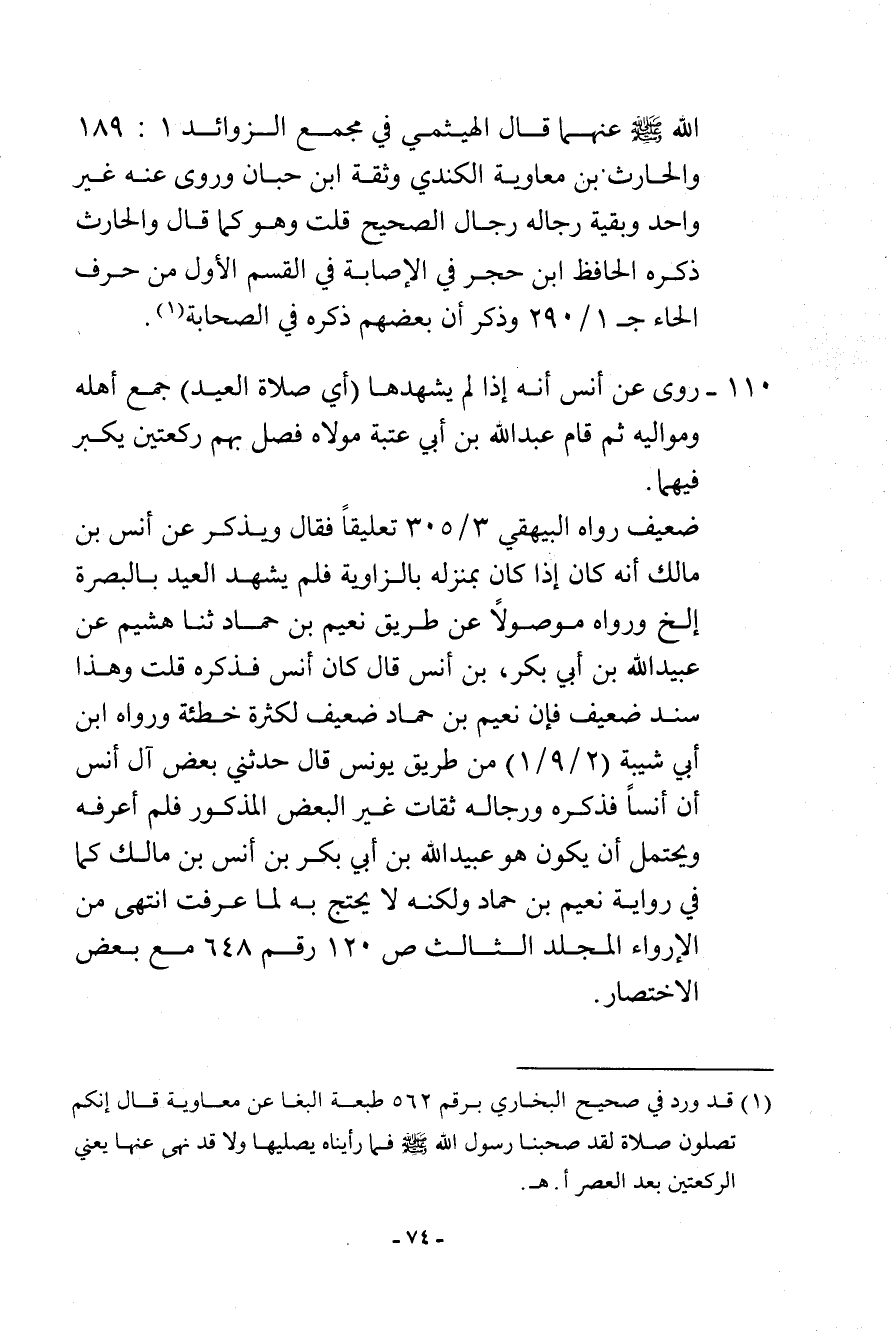 الله - صلى الله عليه وسلم - عنهما. قال الهيثمي في مجمع الزوائد (1: 189) والحارث بن معاوية الكندي وثقه ابن حبان وروى عنه غير واحد وبقية رجاله رجال الصحيح قلت: وهو كما قال والحارث ذكره الحافظ ابن حجر في الإصابة في القسم الأول من حرف الحاء (جـ1/290) وذكر أن بعضهم ذكره في الصحابة (¬1) .
