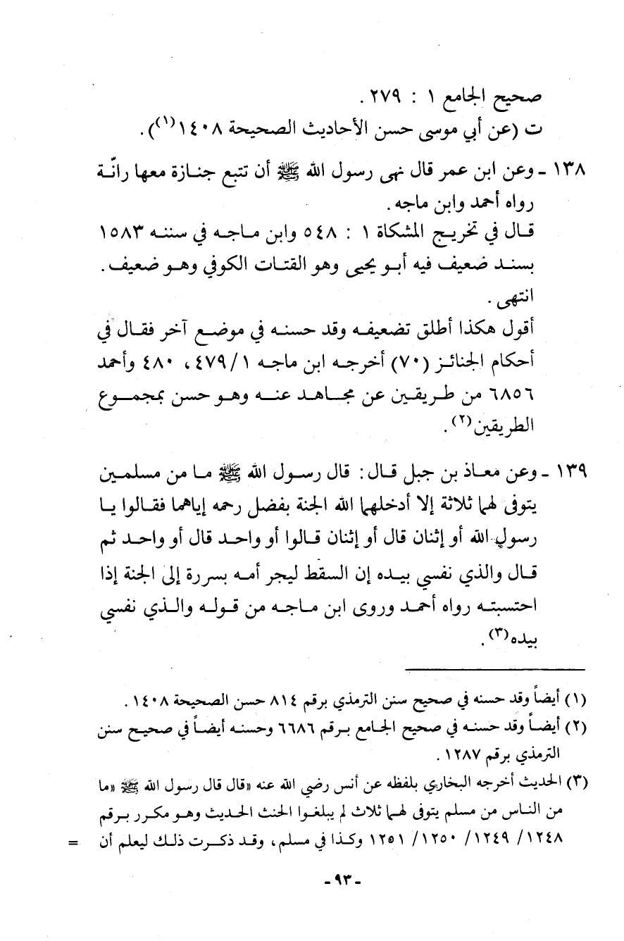 138- وعن ابن عمر قال: (نهى رسول الله - صلى الله عليه وسلم - أن تتبع جنازة معها رانّة) . رواه أحمد وابن ماجة.