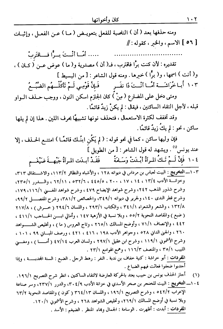 تقديره: لأن كنت برًا فاقترب، فـ (أن) مصدرية و (ما) عوض عن (كان)، و (أنت) اسمها، و (بر) خبرها. ومنه قول الشاعر: [من البسيط]