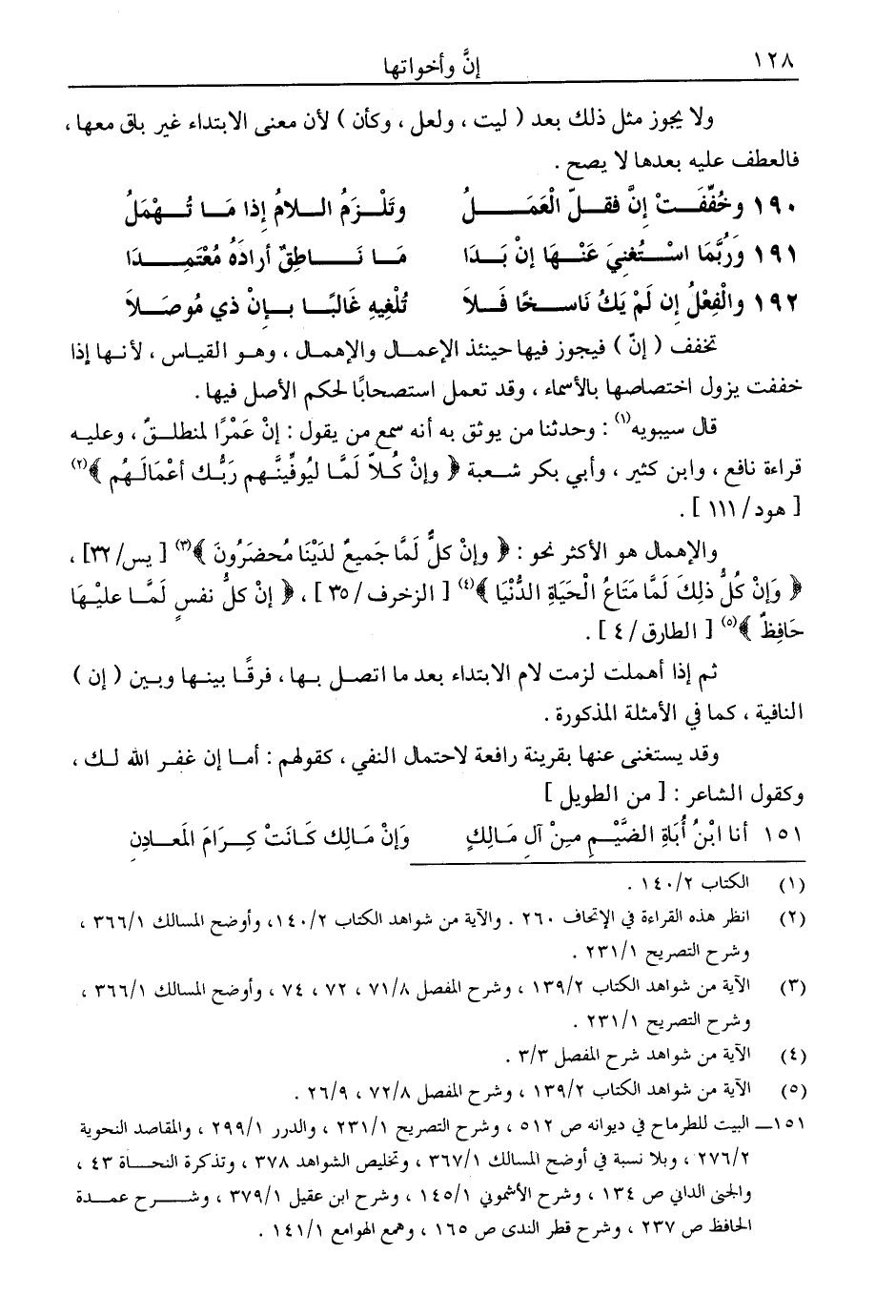 قال سيبويه: وحدثنا من يوثق به أنه سمع من يقول: إن عمرًا لمنطلق، وعليه قراءة نافع، وابن كثير، وأبي بكر شعبة (وإن كلا لما ليوفينهم ربك أعمالهم) [هود /111].