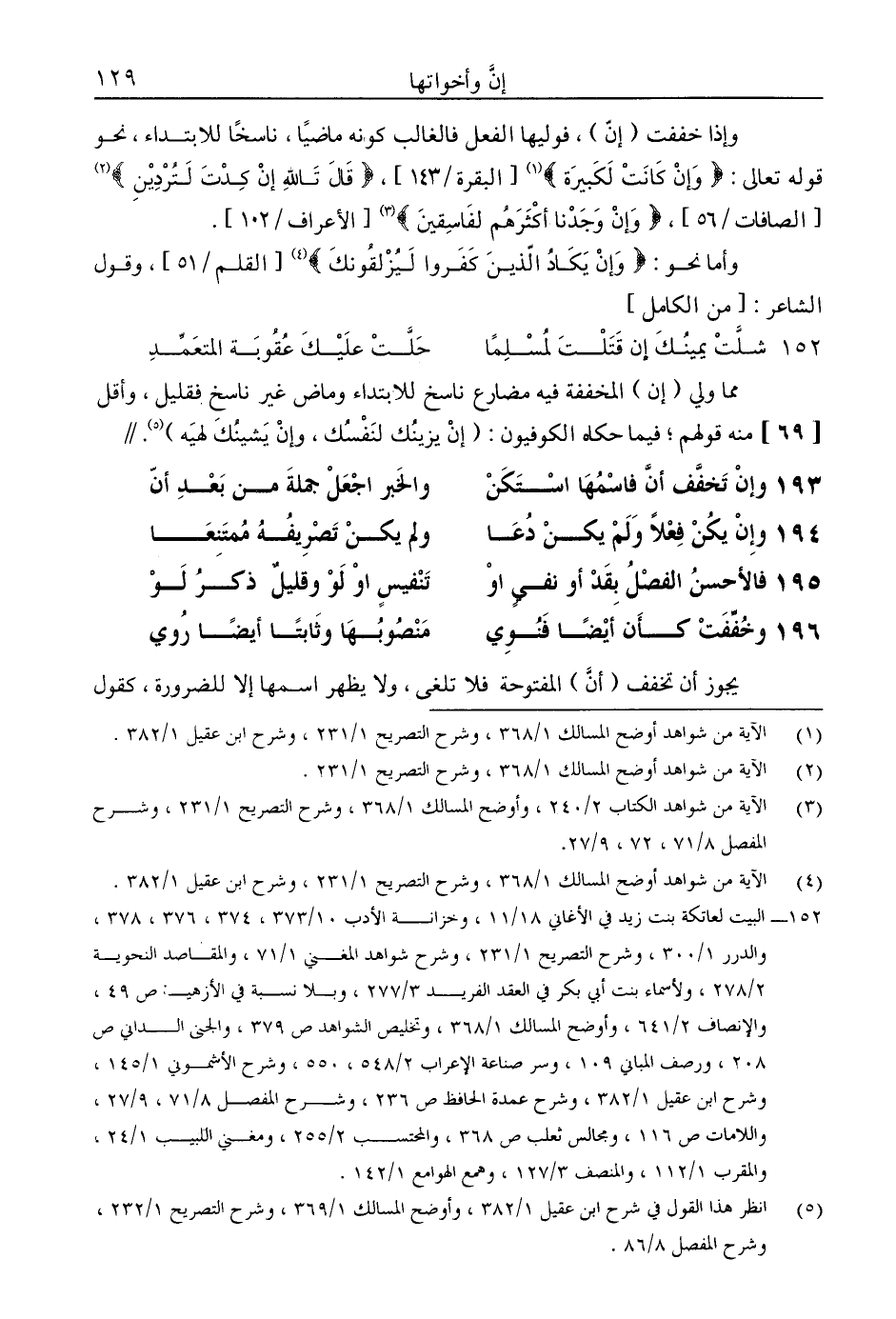 مما ولي (إن) المخففة فيه مضارع ناسخ للابتداء وماض غير ناسخ فقليل، وأقل [69] منه قولهم؛ فيما حكاه الكوفيون: (إن يزينك لنفسك، وإن يشينك لهيه). //
