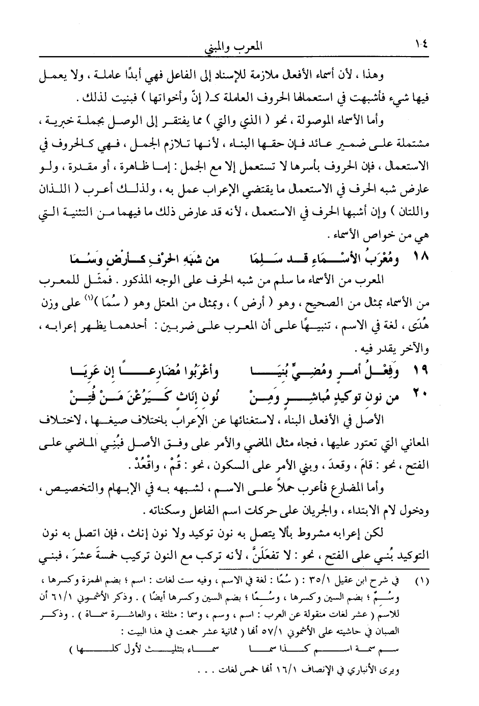 18 - ومعرب الأسماء قد سلما ... من شبه الحرف كأرض وسما