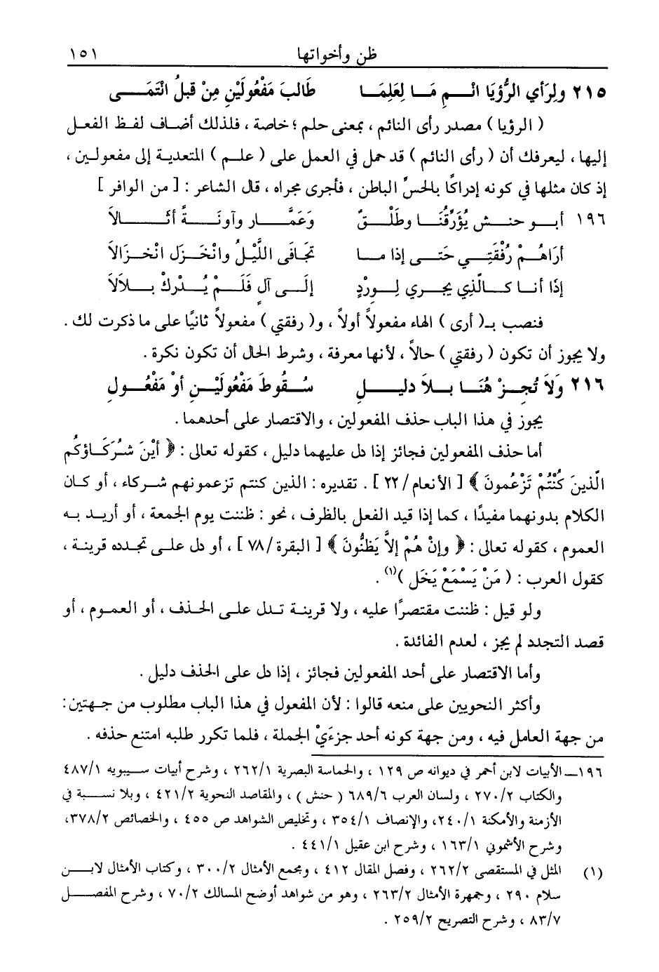 215 - ولرأي الرؤيا انم ما لعلما ... طالب مفعولين من قبل انتمى