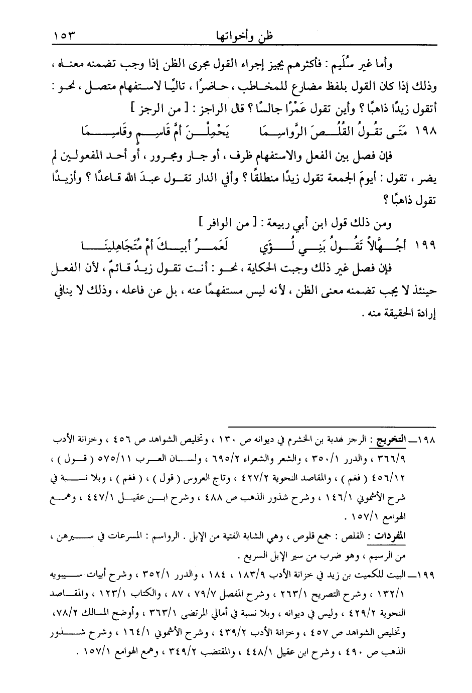 وأما غير سليم: فأكثرهم يجيز إجراء القول مجرى الظن إذا وجب تضمنه معناه، وذلك إذا كان القول بلفظ مضارع للمخاطب، حاضرًا، تاليًا لاستفهام متصل، نحو: أتقول زيدًا ذاهبًا؟ وأين تقول عمرًا جالسًا؟ قال الراجز: [من الرجز]