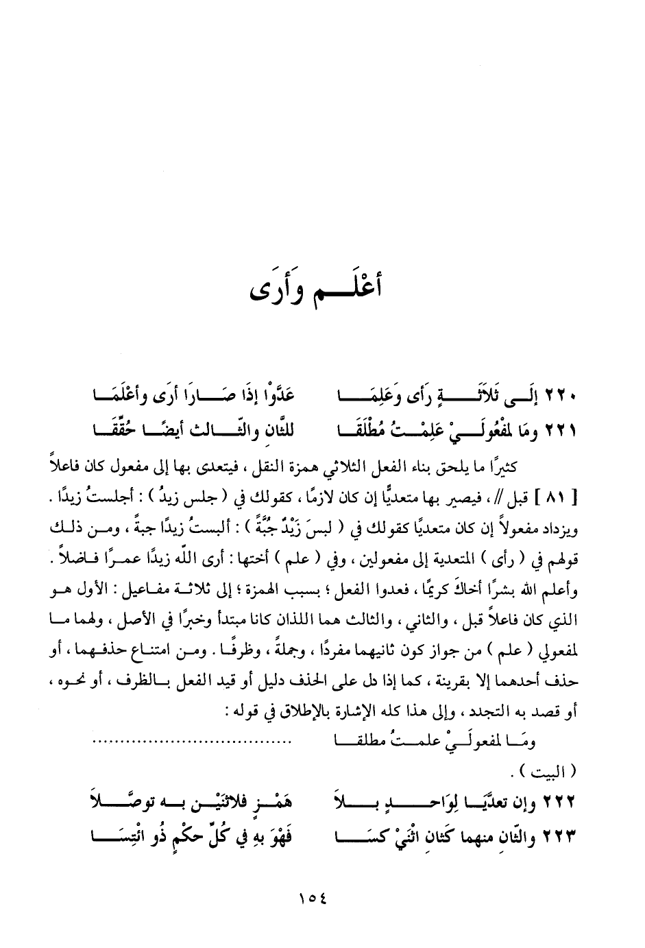 220 - إلى ثلاثةٍ رأي وعلما ... عدوا إذا صارا أرى وأعلما