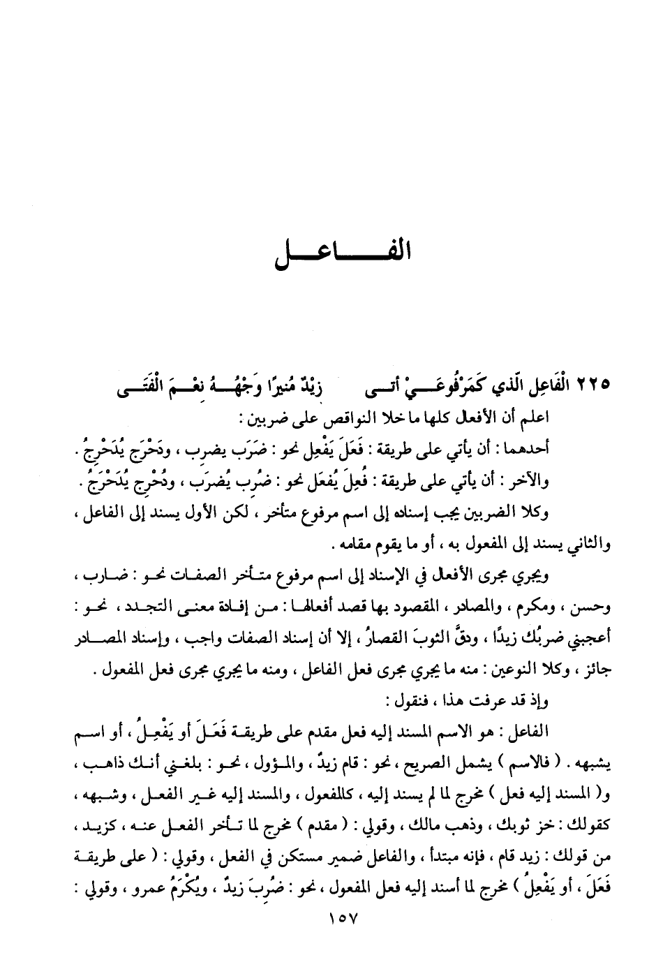 225 - الفاعل الذي كمرفوعي أتى ... زيد منيرًا وجهه نعم الفتى