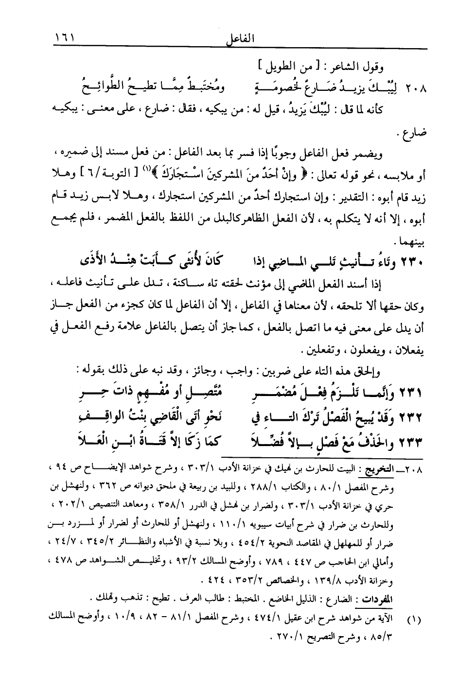 231 - وإنما تلزم فعل مضمر ... متصل أو مفهمٍ ذات حر